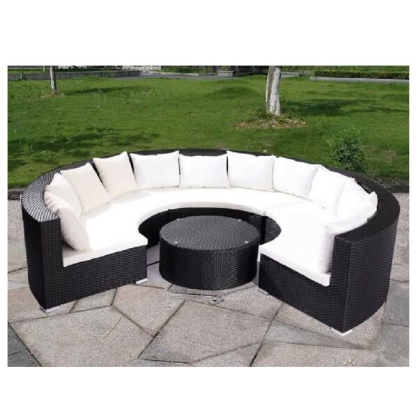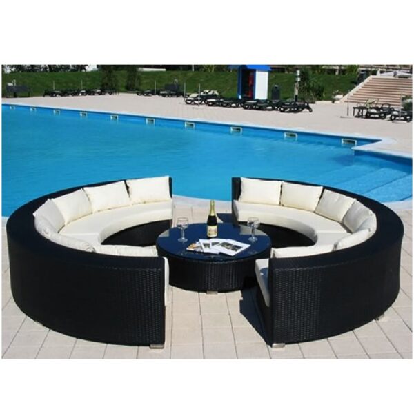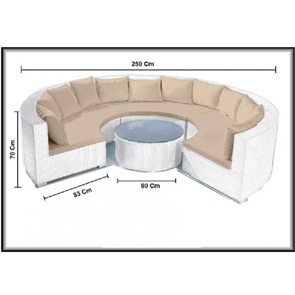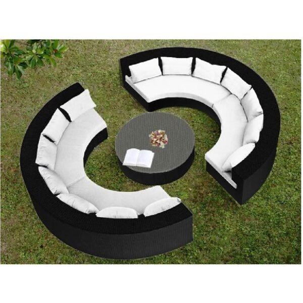 Arredo per esterni Wendy 250×80 divano circolare bianco o nero con tavolo e cuscini