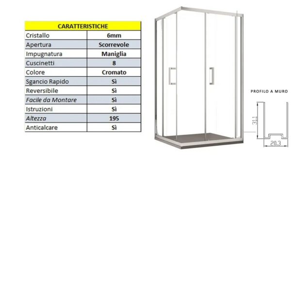 Box Doccia con doppia porta scorrevole in varie misure vetro opaco 6 mm anticalcare BOX086