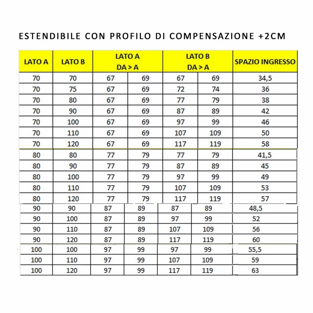 -44%Box Doccia disponibile in varie misure, da 195 cm di altezza. Reversibile. Cristallo opaco da 6 mm con trattamento anti-calcare
