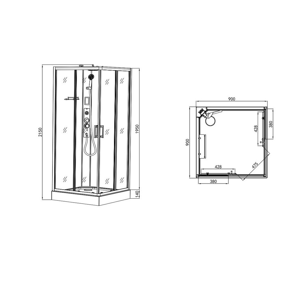 -16%Cabina idromassaggio con piatto doccia in acrilico ed un getto massaggiante sulla colonna doccia. Dotata di display di controllo touchscreen con radio, altoparlanti e sistema di ventilazione