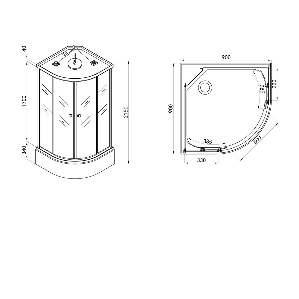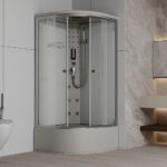 La cabina misura 90x90x215 cm, è dotata di vetro temperato di spessore 5mm anti rottura, con vasca in acrilico a fondo antiscivolo e chiusura magnetizzata.