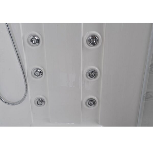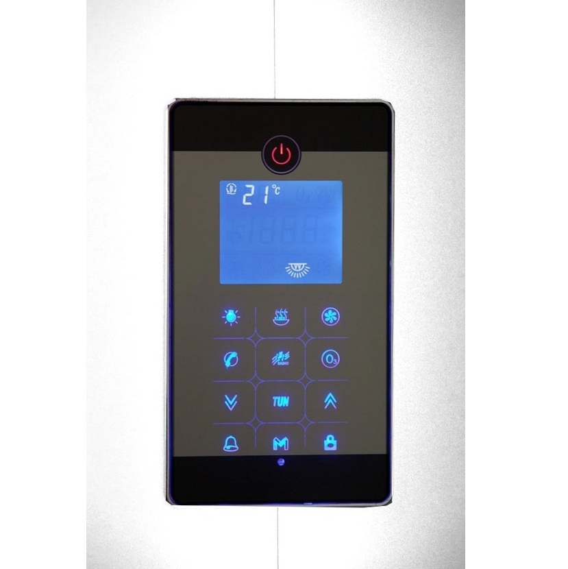 Questa cabina idromassaggio rivoluzionerà il vostro modo abituale di fare la doccia, tramite alcuni optional che renderanno la vostra un’esperienza indimenticabile. La cabina, di dimensioni 110x110x215 cm è dotata di pannello di controllo digitale, radio, piatto doccia rinforzato a tre strati, colonna doccia con getti idromassaggio: 6 posti su di un primo pannello e 3 su un secondo pannello, 2 poggia schiena, seduta per bagno turco e idromassaggio, cromoterapia, ricevitore telefonico (disponibile anche in vivavoce), casse acustiche, vetro da 6,5 mm di spessore di sicurezza, generatore di vapore per bagno turco, ozonoterapia. Il bagno turco è una delle pratiche che più sta venendo rivalutata nei suoi effetti benefici per la salute psicofisica: ad esempio è dimostrato che il bagno turco e la bagno turco, donando relax, accentuino la produzione di endorfine le quali rilasciano una sensazione di benessere, relax e pace a tutto il corpo.