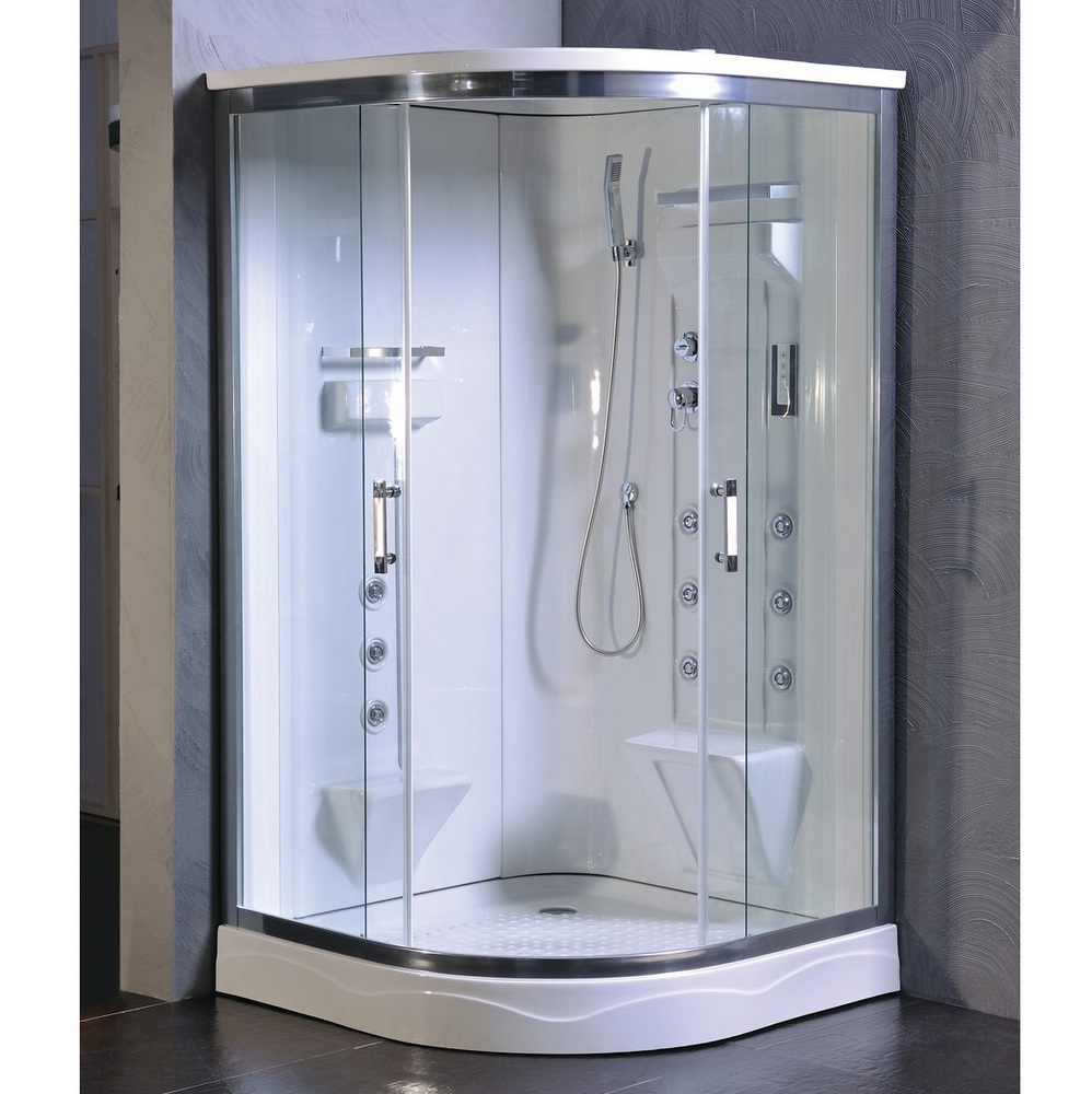 Cabina idromassaggio 110x110x215 per due persone, con doppia sedia, piatto basso in ABS