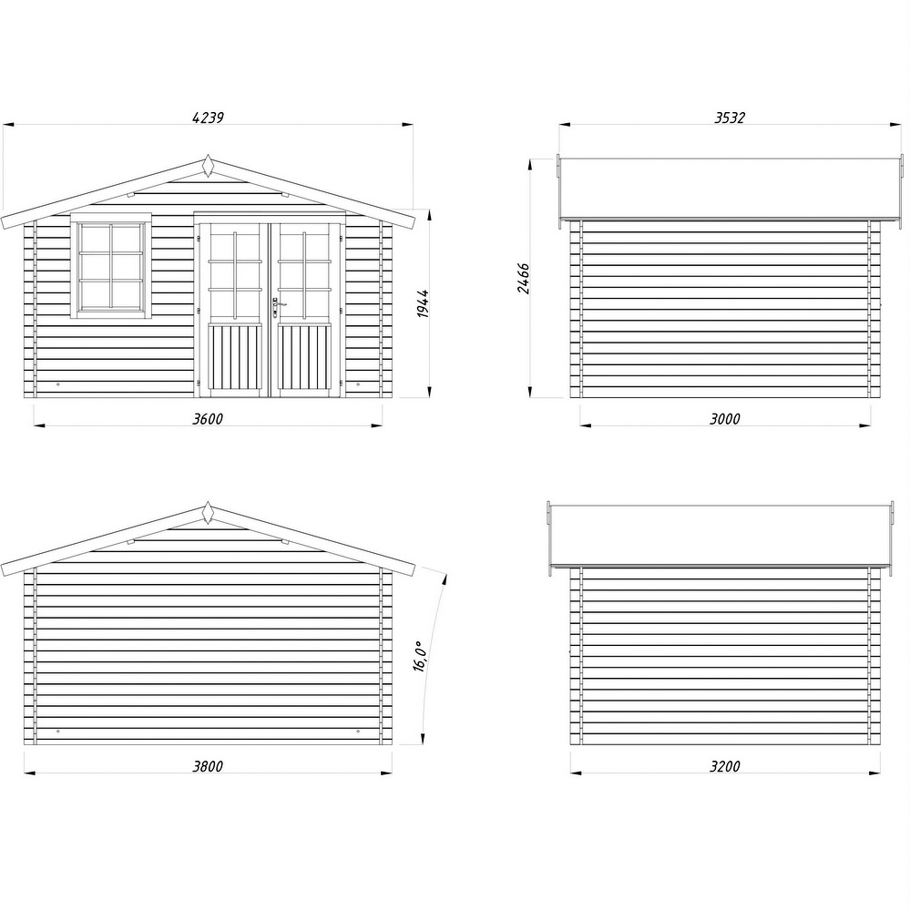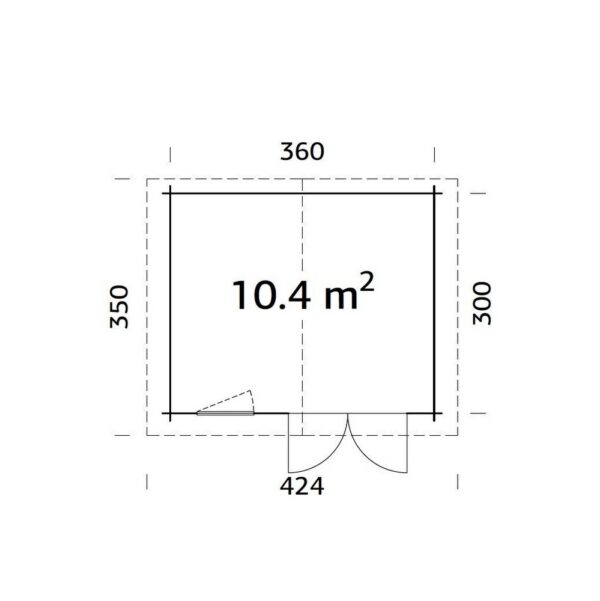 Casetta da 380×320 cm in legno di abete con porta e finestra CS058