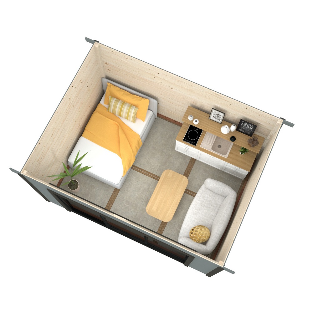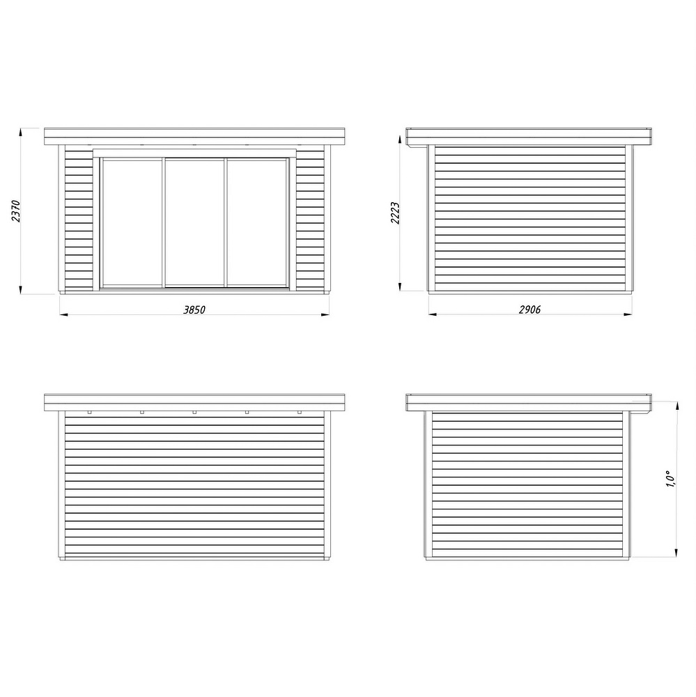 Casetta da 385×291 cm in legno di abete con o senza pavimento CS056