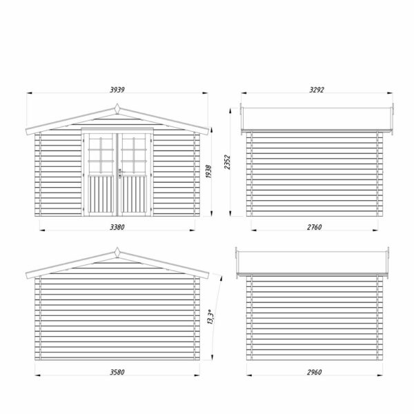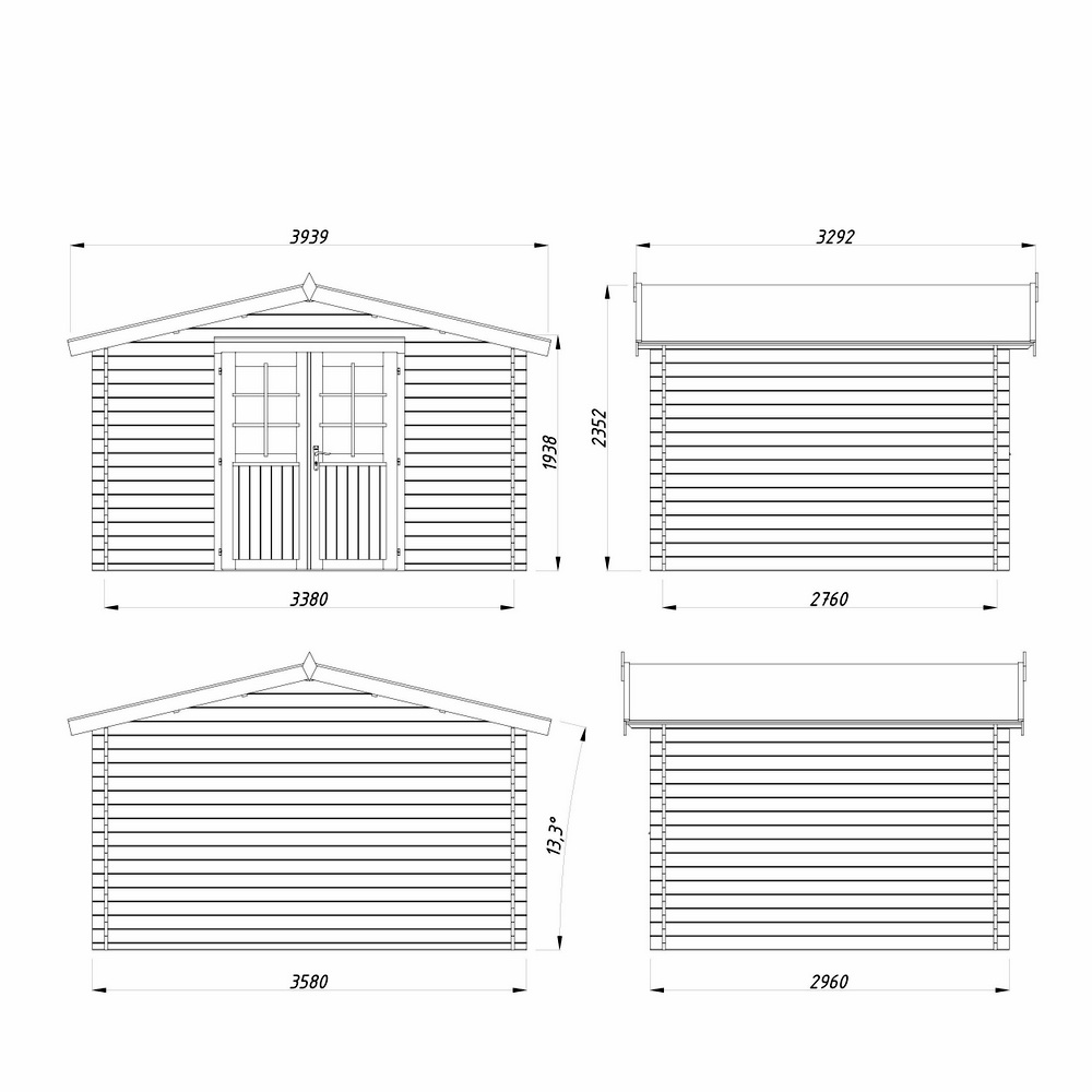 Casetta da giardino in legno 358×296 cm con o senza pavimento CS038