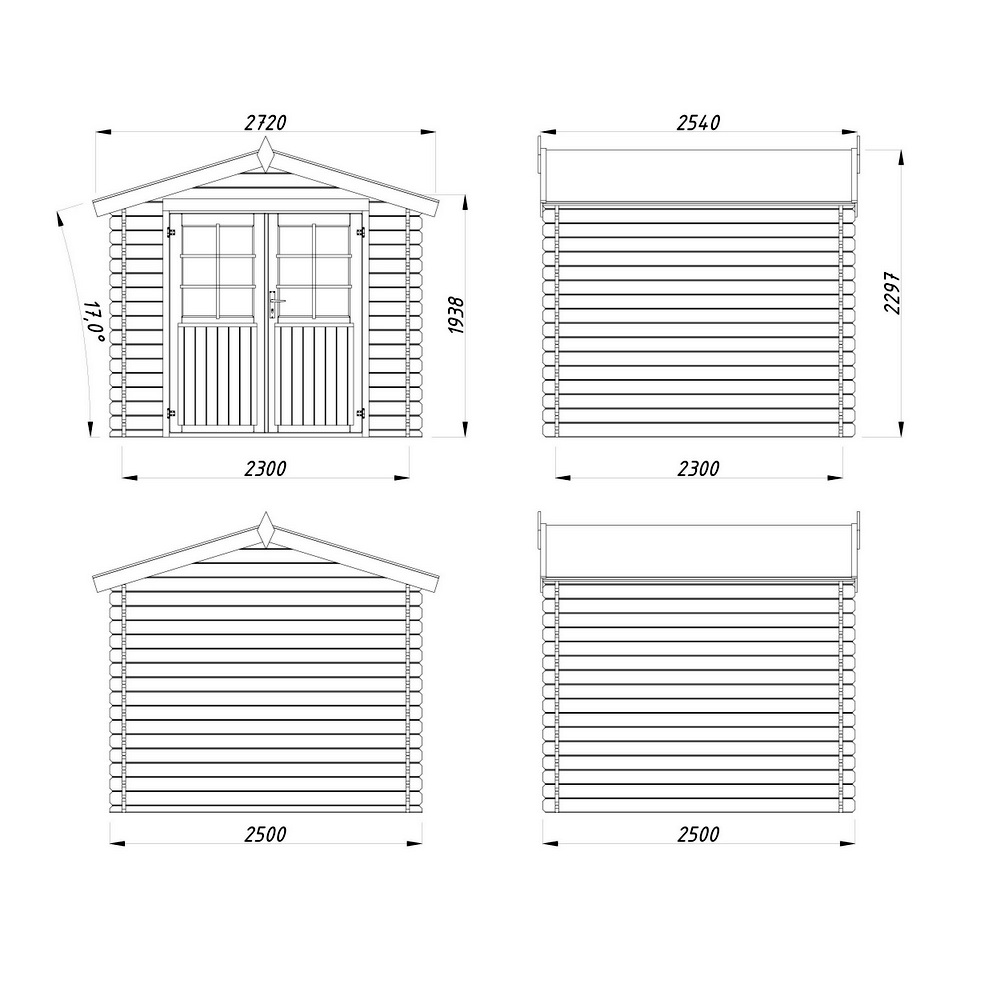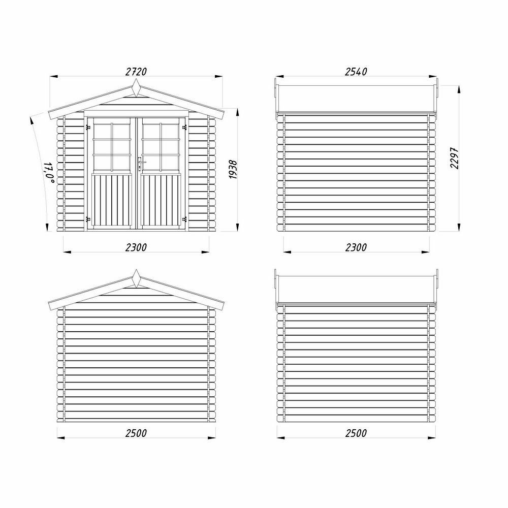 Casetta in legno quadrata da giardino 250×250 cm con o senza pavimento CS039