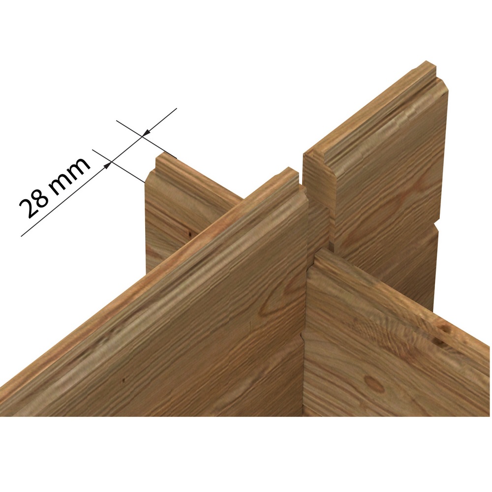 Casetta quadrata in legno di abete impregnato in autoclave color marrone e essiccato