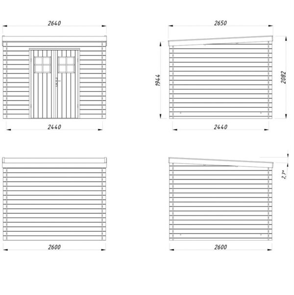 Casetta quadrata 260×260 cm in legno Abete impregnato con o senza pavimento CS047