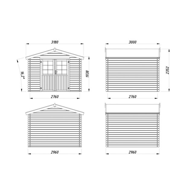 Casetta quadrata in legno con o senza pavimento 296×296 cm per giardini ed esterni CS040