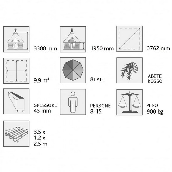 Chiosco ottagonale gazebo per giardino 9,9mq in legno abete rosso per 15 persone