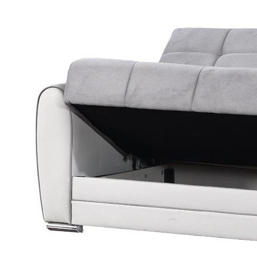 Divano letto Carmen 220×114 cm bicolor bianco e grigio in ecopelle e microfibra con vano contenitore