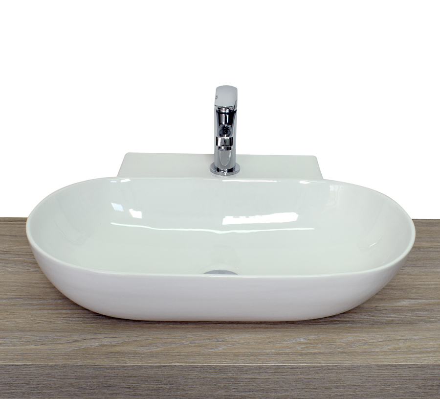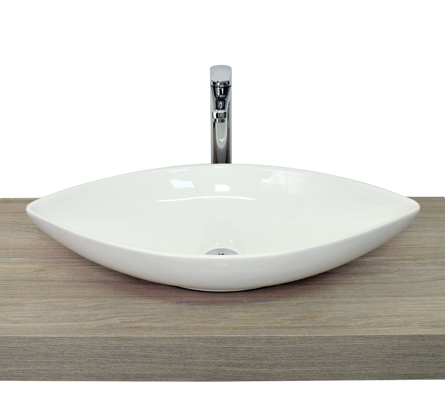 Lavabo da appoggio a goccia ovale squadrato in ceramica bianco modello LAV03