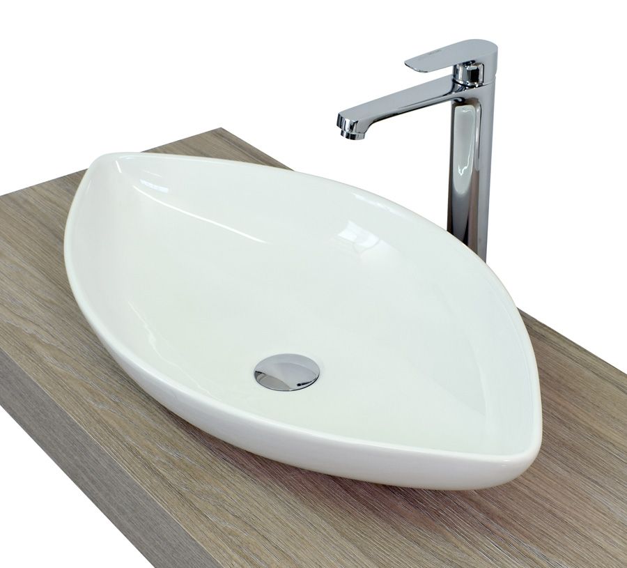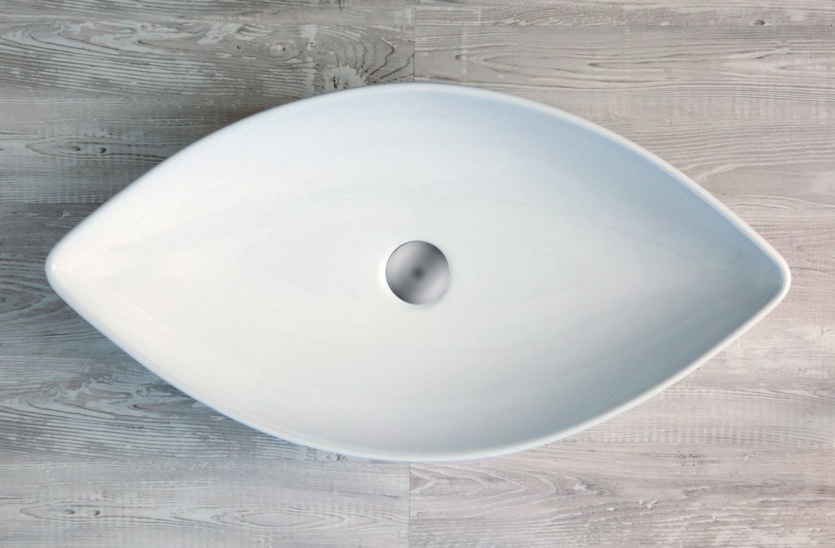 Lavabo da appoggio a goccia ovale squadrato in ceramica bianco in vari modelli