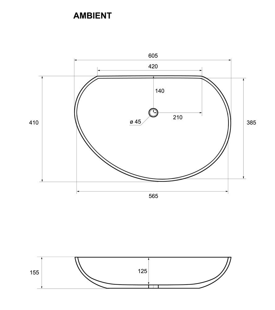 Lavabo da appoggio 60.5x41x15.5 cm modello Ambient
