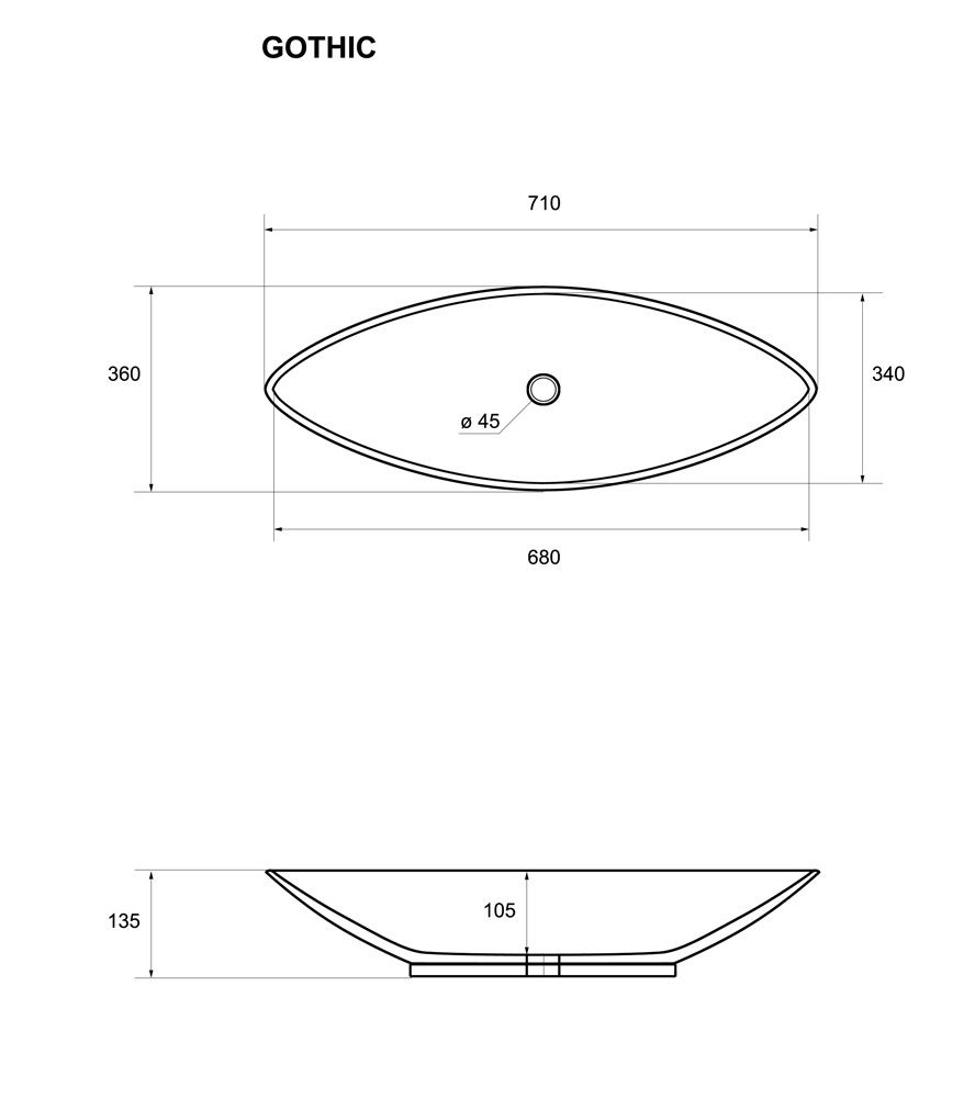 Lavabo da appoggio 71x36x13.5 cm modello Gothic