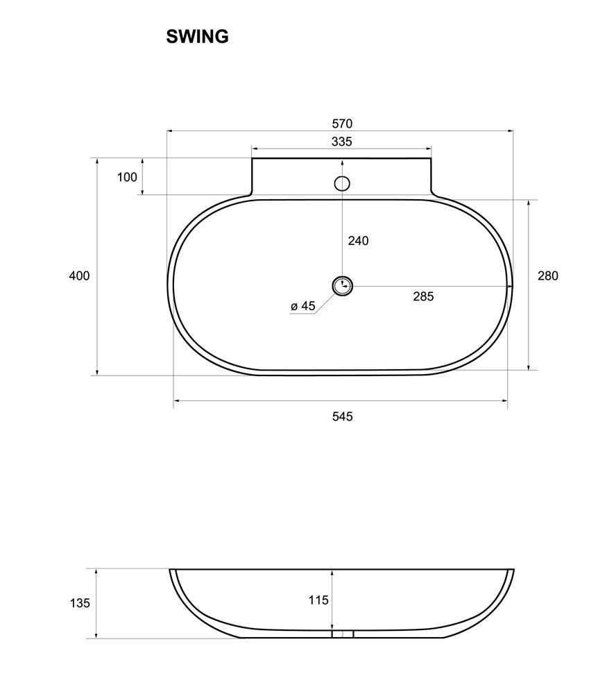Lavabo da appoggio 57x40x13,5 cm modello Swing