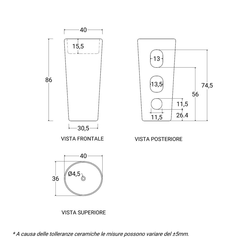Lavabo freestanding 40xH86 cm in ceramica nero opaco LAV63