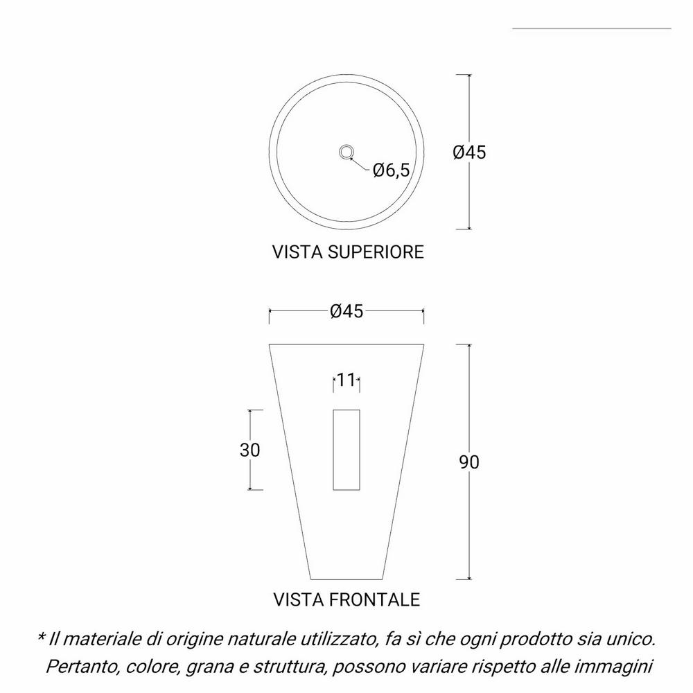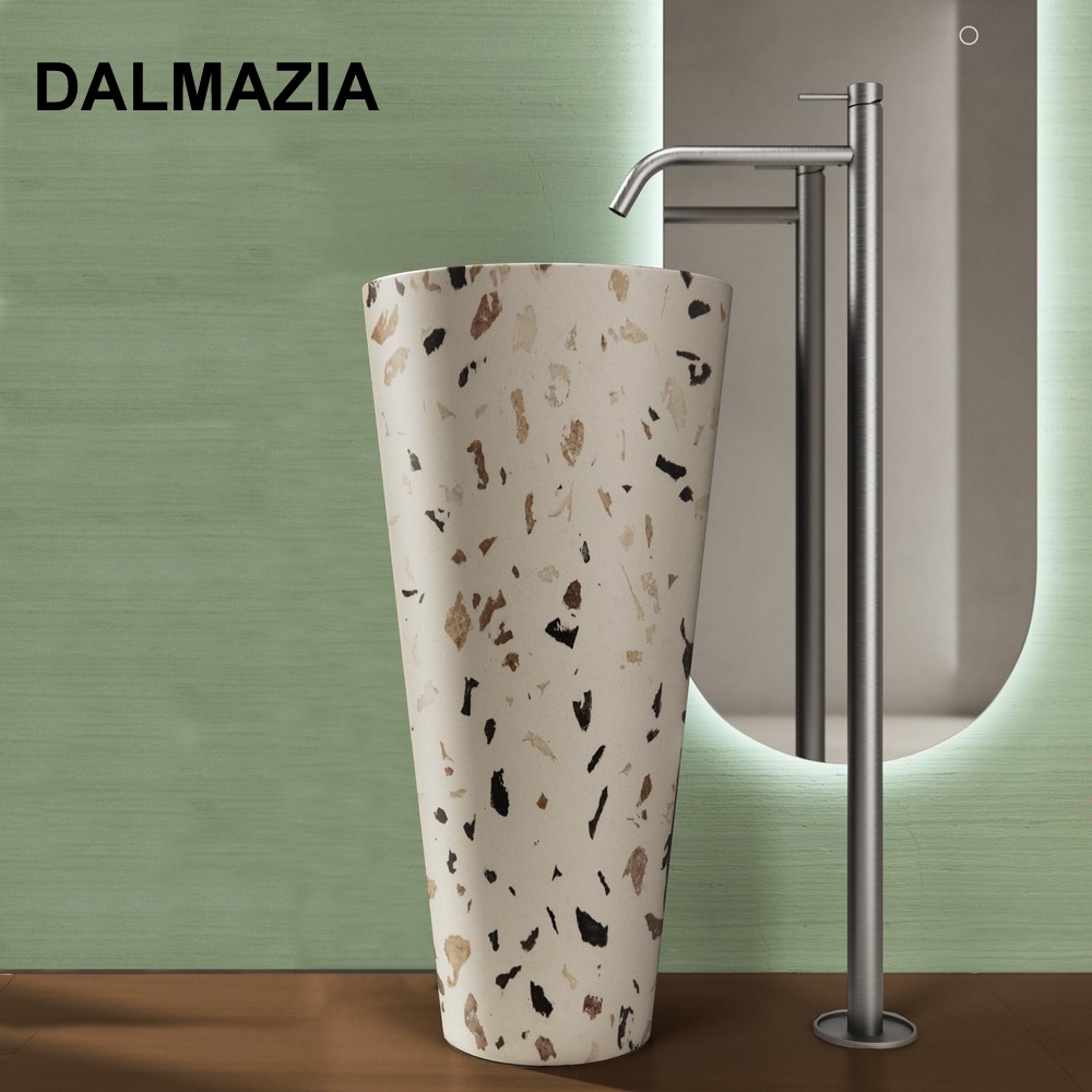 Lavabo freestanding rotondo in battuto di terrazzo 45xH90 cm in 6 colori LAV104