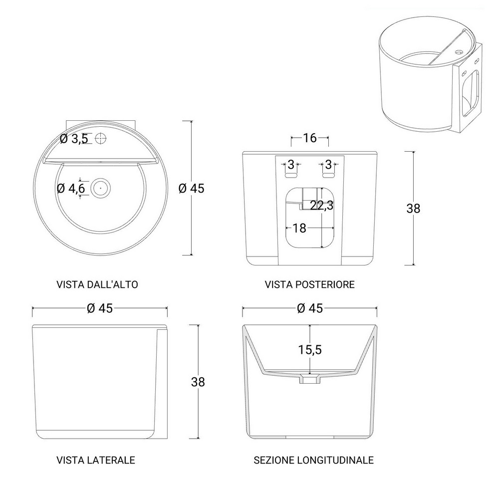 Altezza interna vasca: 15,5 cm