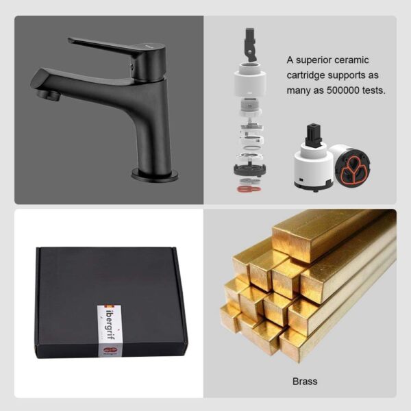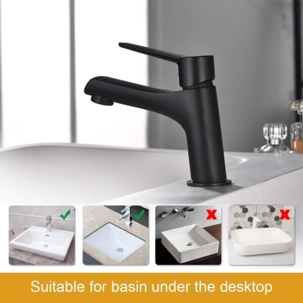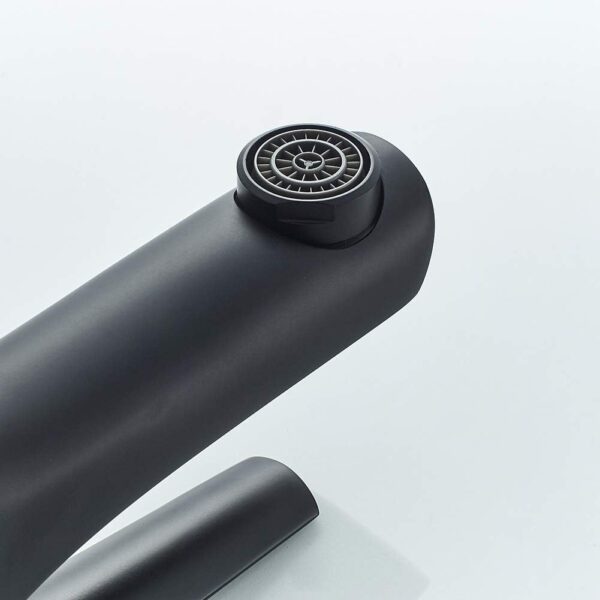 -59%Rubinetto moderno per lavandino in ottone, a collo basso, con finitura nero opaco.