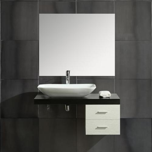 Arredo per bagno moderno minimal, composto da una mensola colore nero e 2 cassetti bianchi. Lavabo in ceramica e specchio compresi nel prezzo.