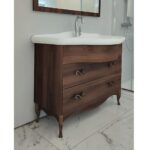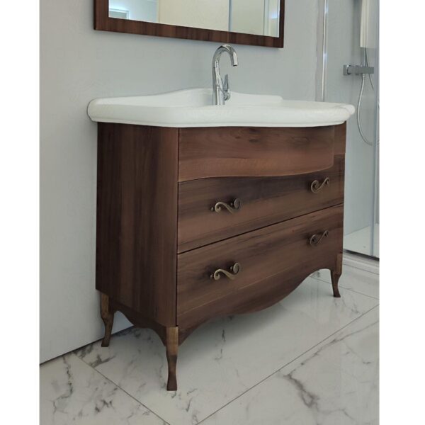 Mobile Bagno Giove da 114 cm con due cassetti in arte povera noce o decapè lavabo in ceramica