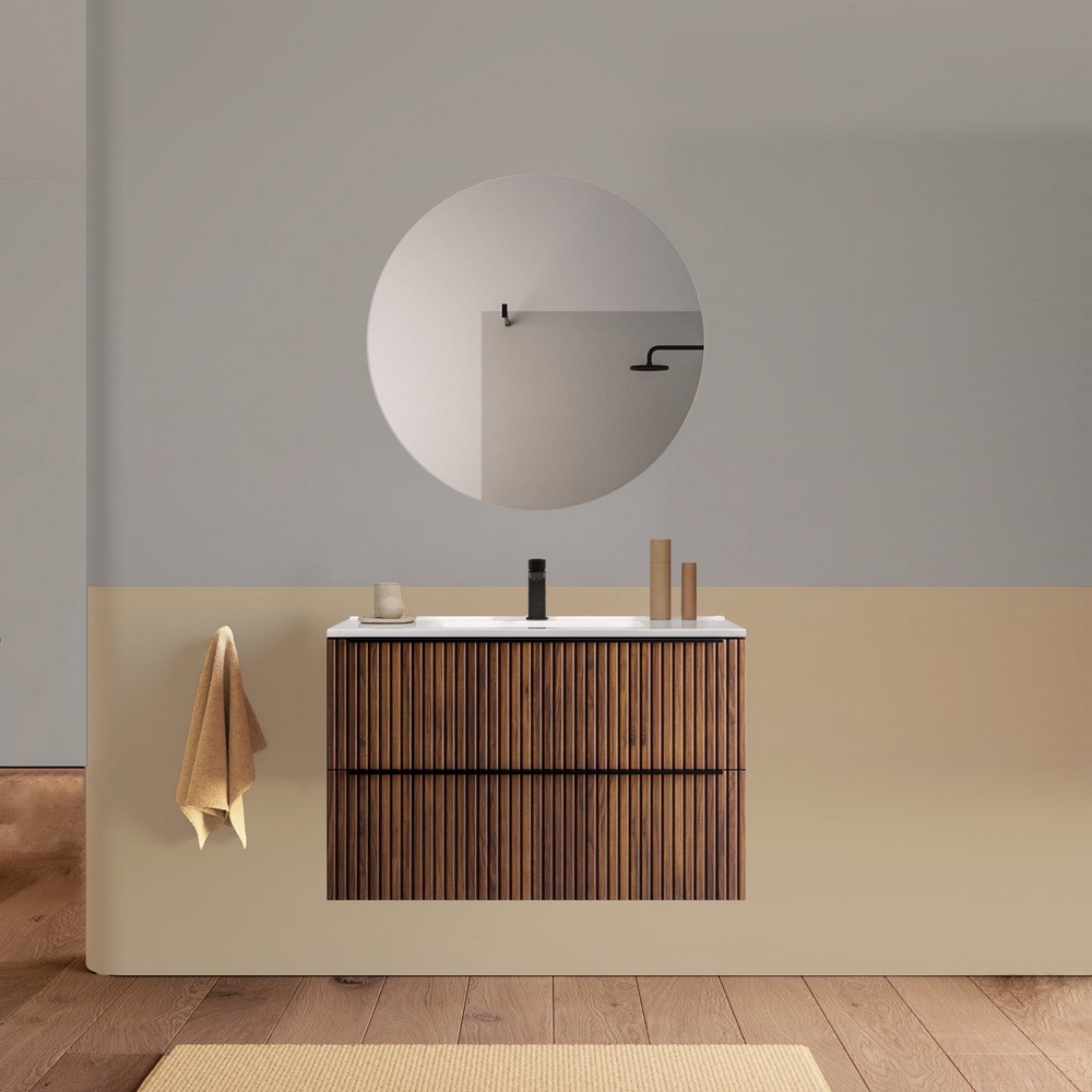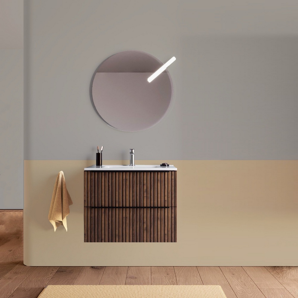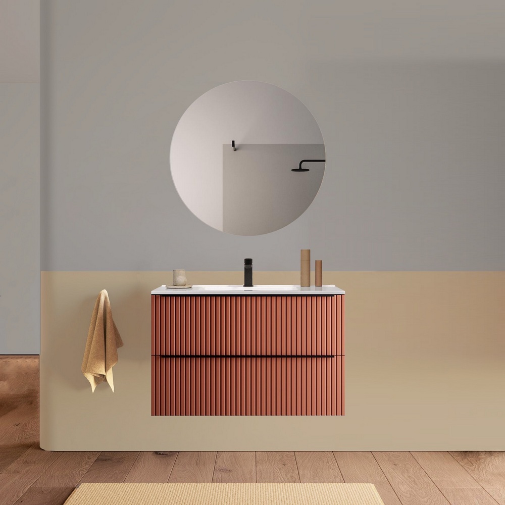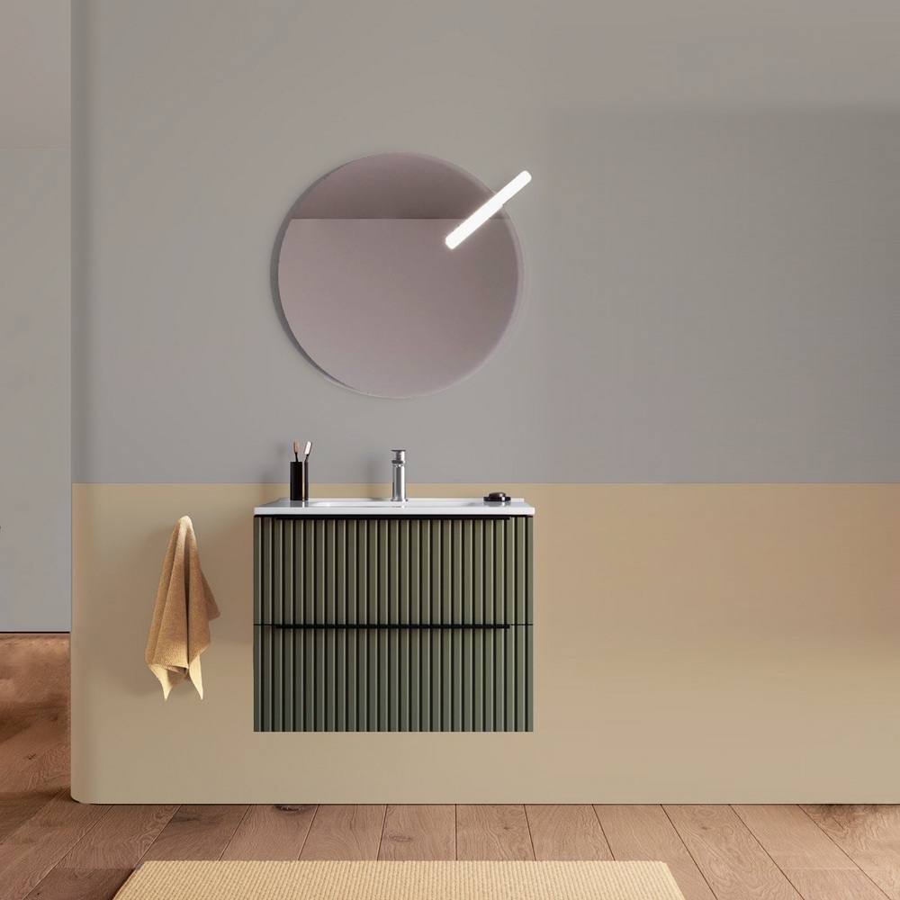 -48%Mobile bagno sospeso, disponibile da 60, 70, 80, 90 o 100 cm e nei colori rovere africa, noce maya, bianco opaco, nero opaco, terrarossa, verde selva. Base composta da due cassetti con frontali ad effetto cannettato. Il lavabo e lo specchio sono inclusi nel prezzo.
