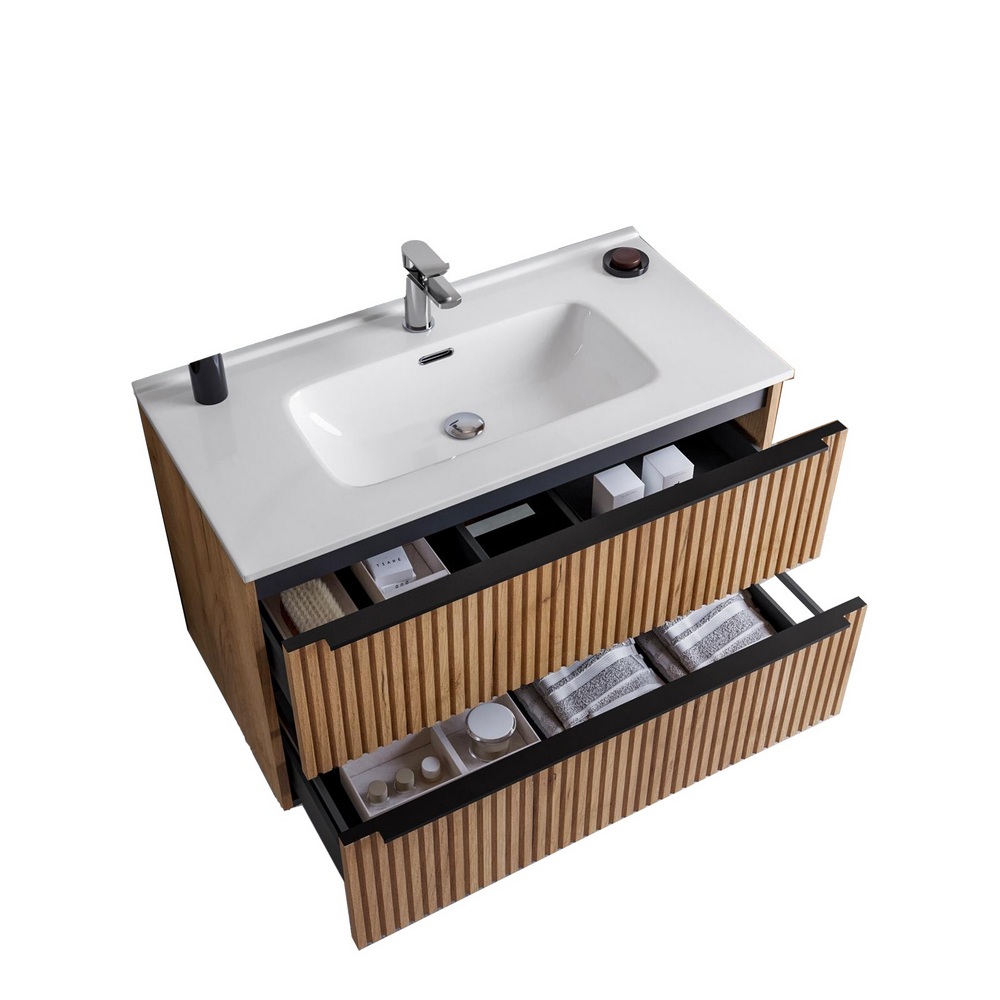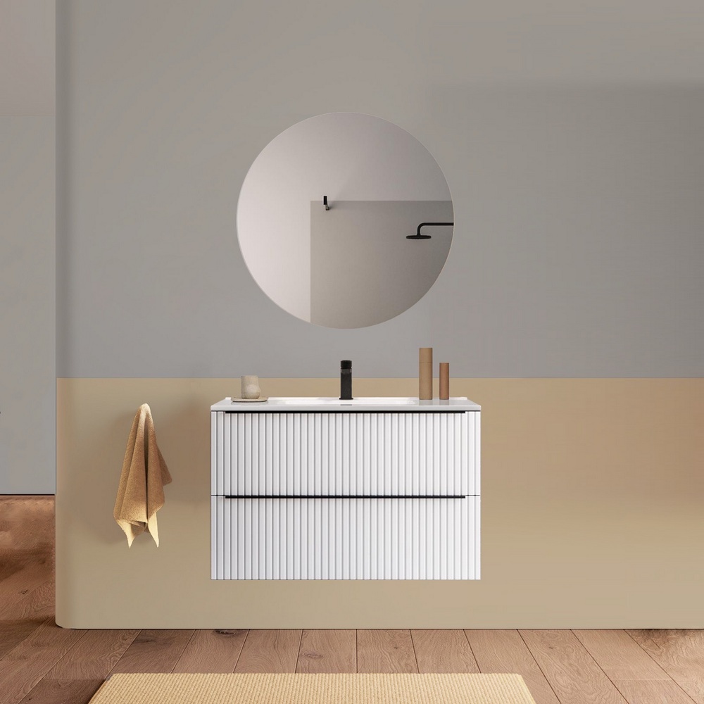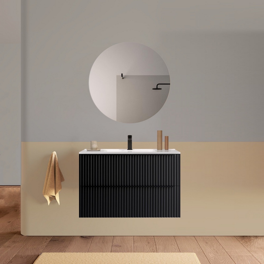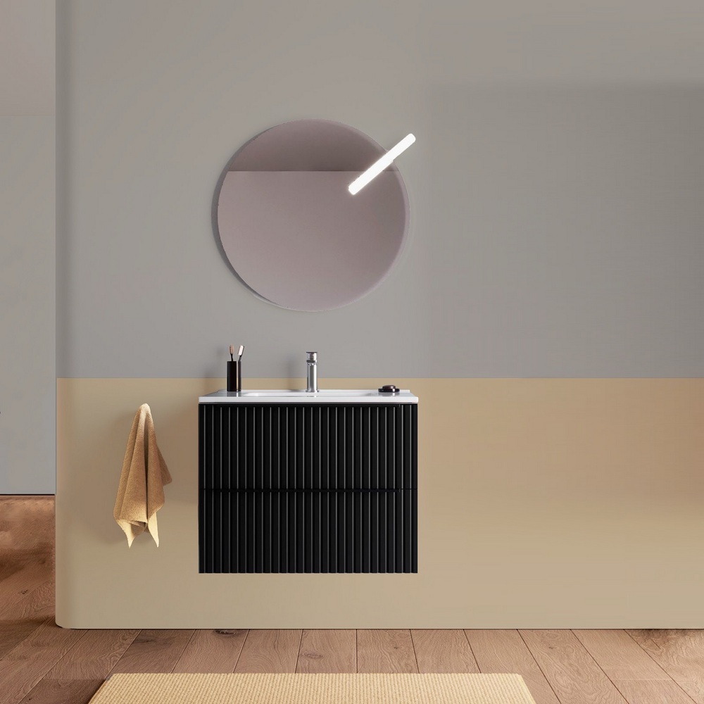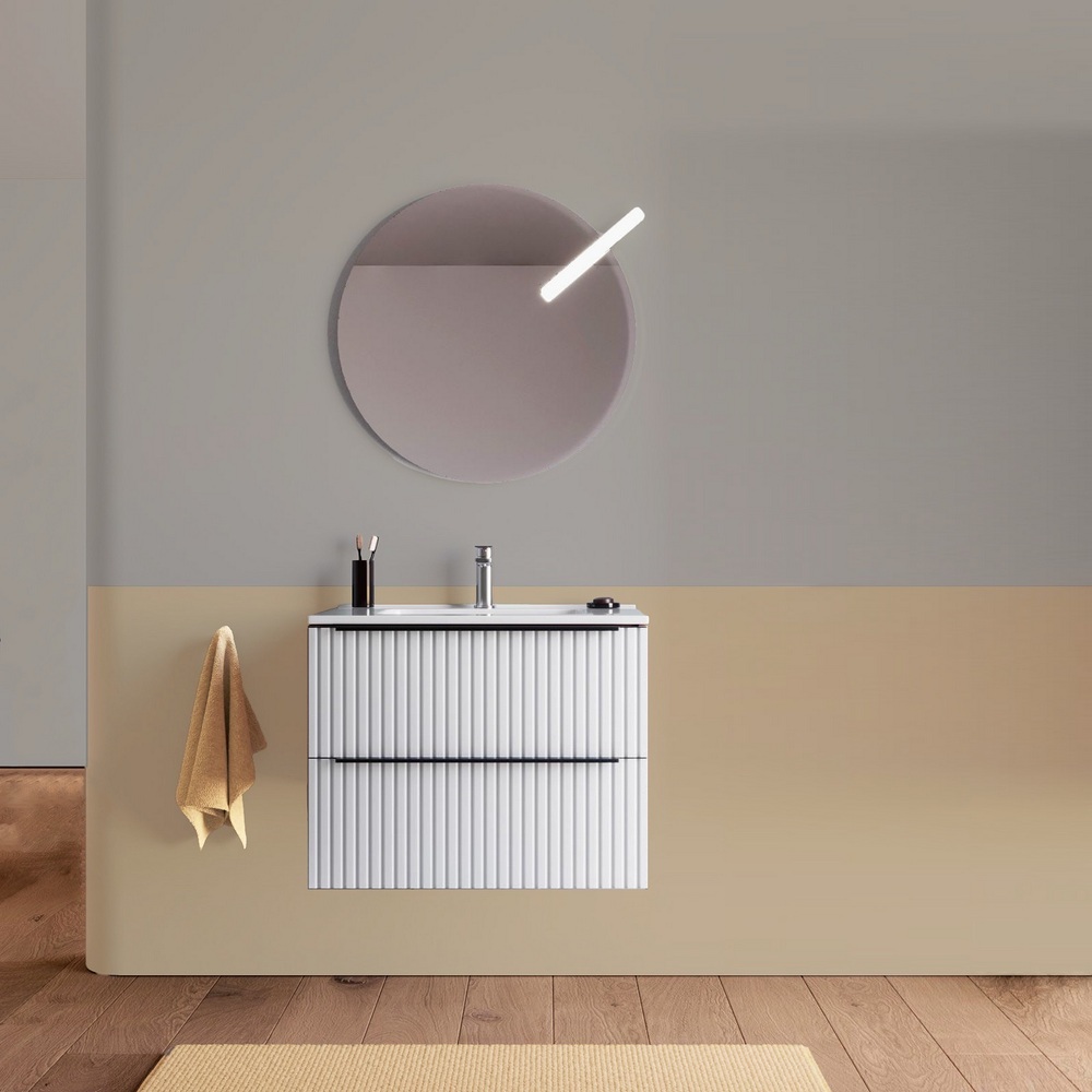 -48%Mobile bagno sospeso, disponibile da 60, 70, 80, 90 o 100 cm e nei colori rovere africa, noce maya, bianco opaco, nero opaco, terrarossa, verde selva. Base composta da due cassetti con frontali ad effetto cannettato. Il lavabo e lo specchio sono inclusi nel prezzo.