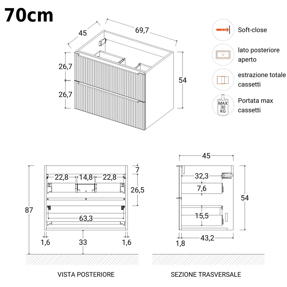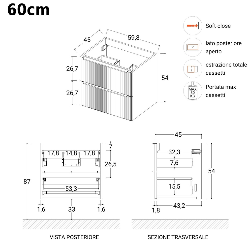 Composto da 2 cassetti a chiusura ammortizzata (softclose)