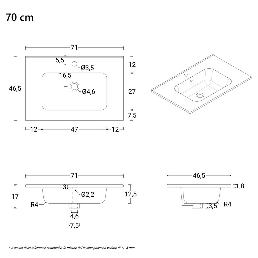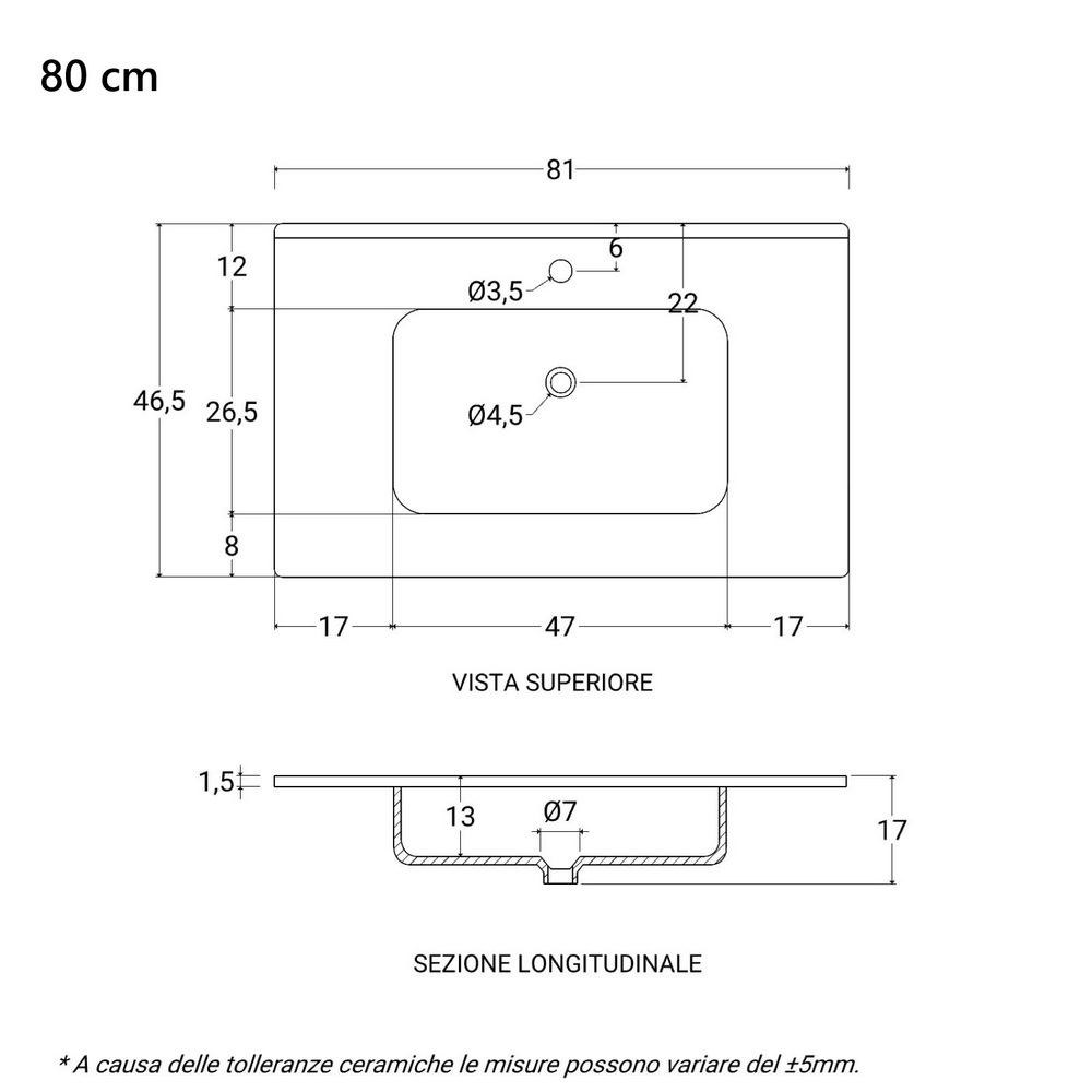 Mobile bagno Lion2 in 5 misure con 2 cassetti, lavabo e specchio 6 colori disponibili