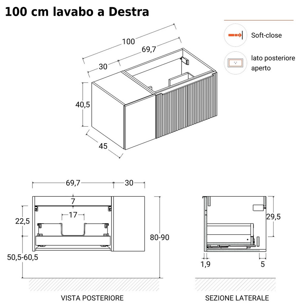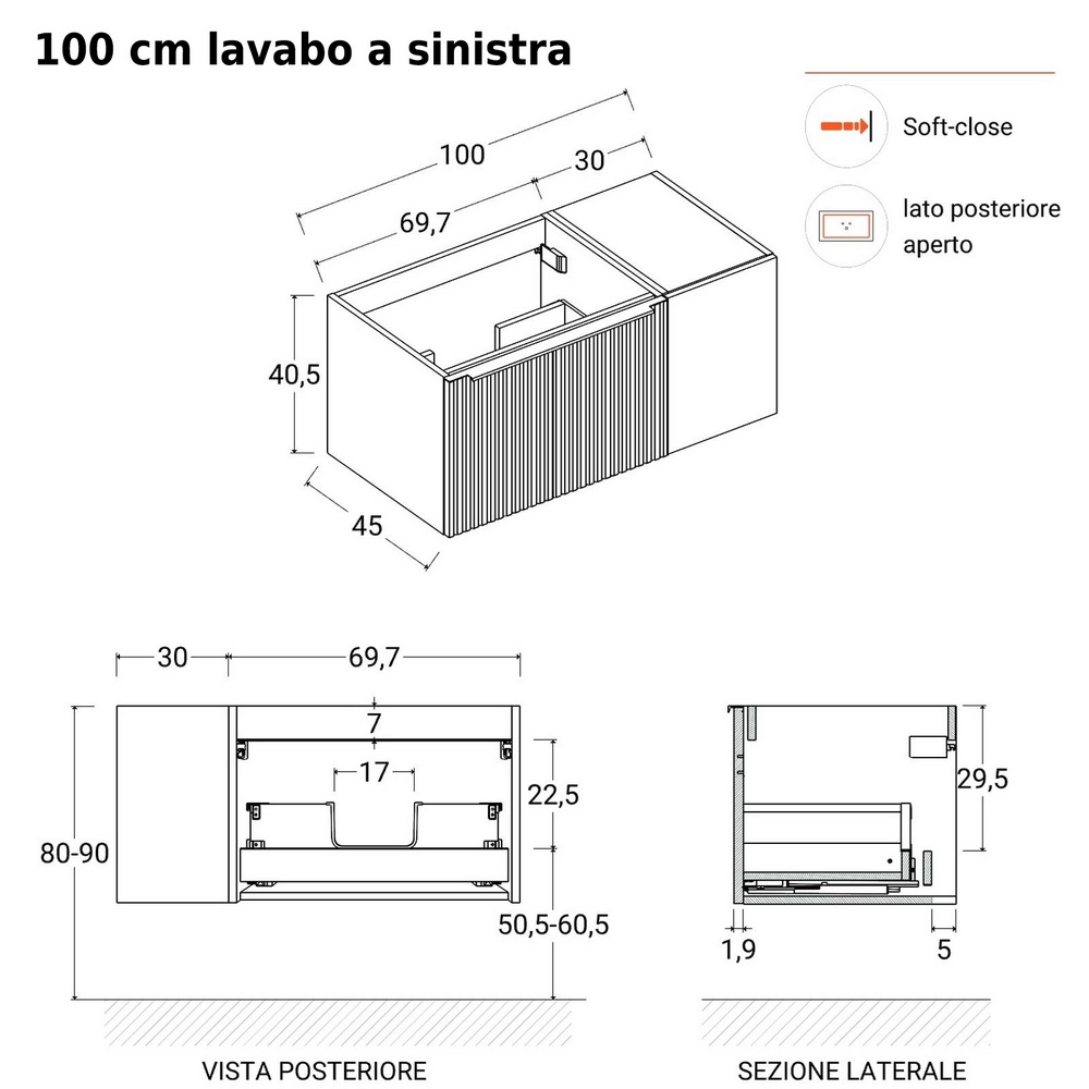 - 100 cm con specchio da 70×100 cm