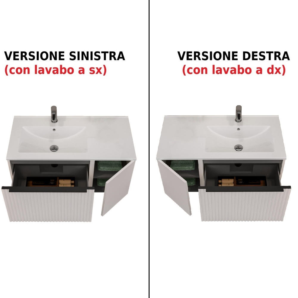 Mobile bagno Lion4 con cassettone ed anta 90 o 100 cm lavabo dx o sx in 11 colori