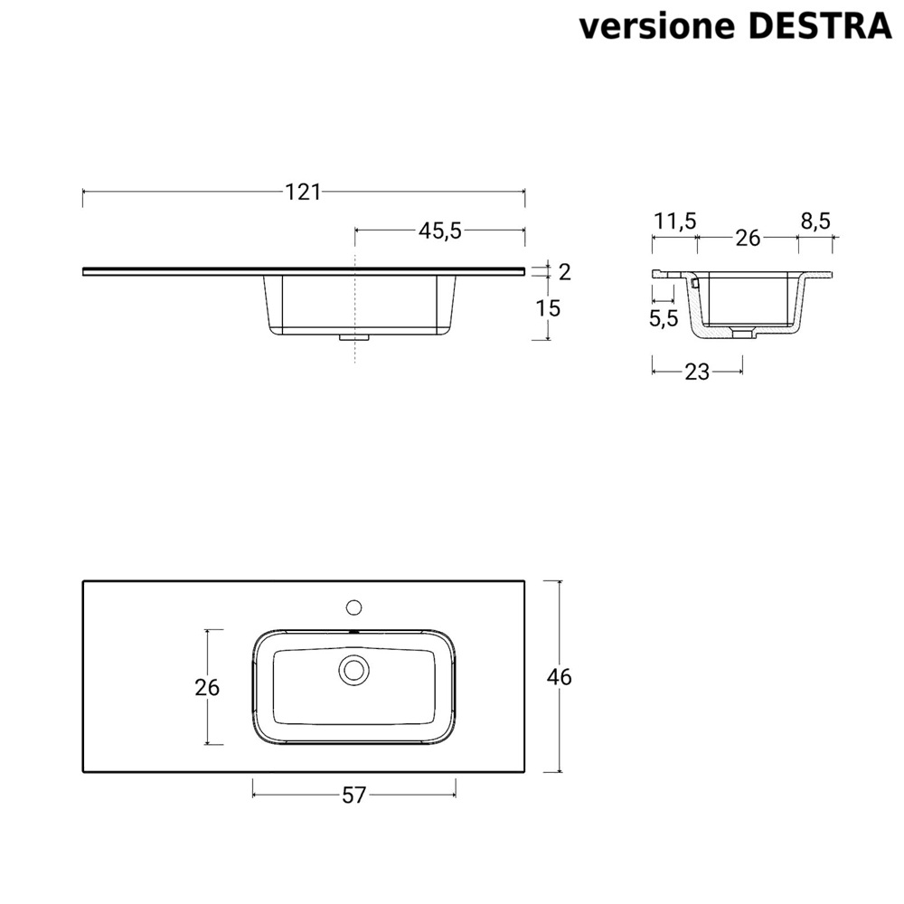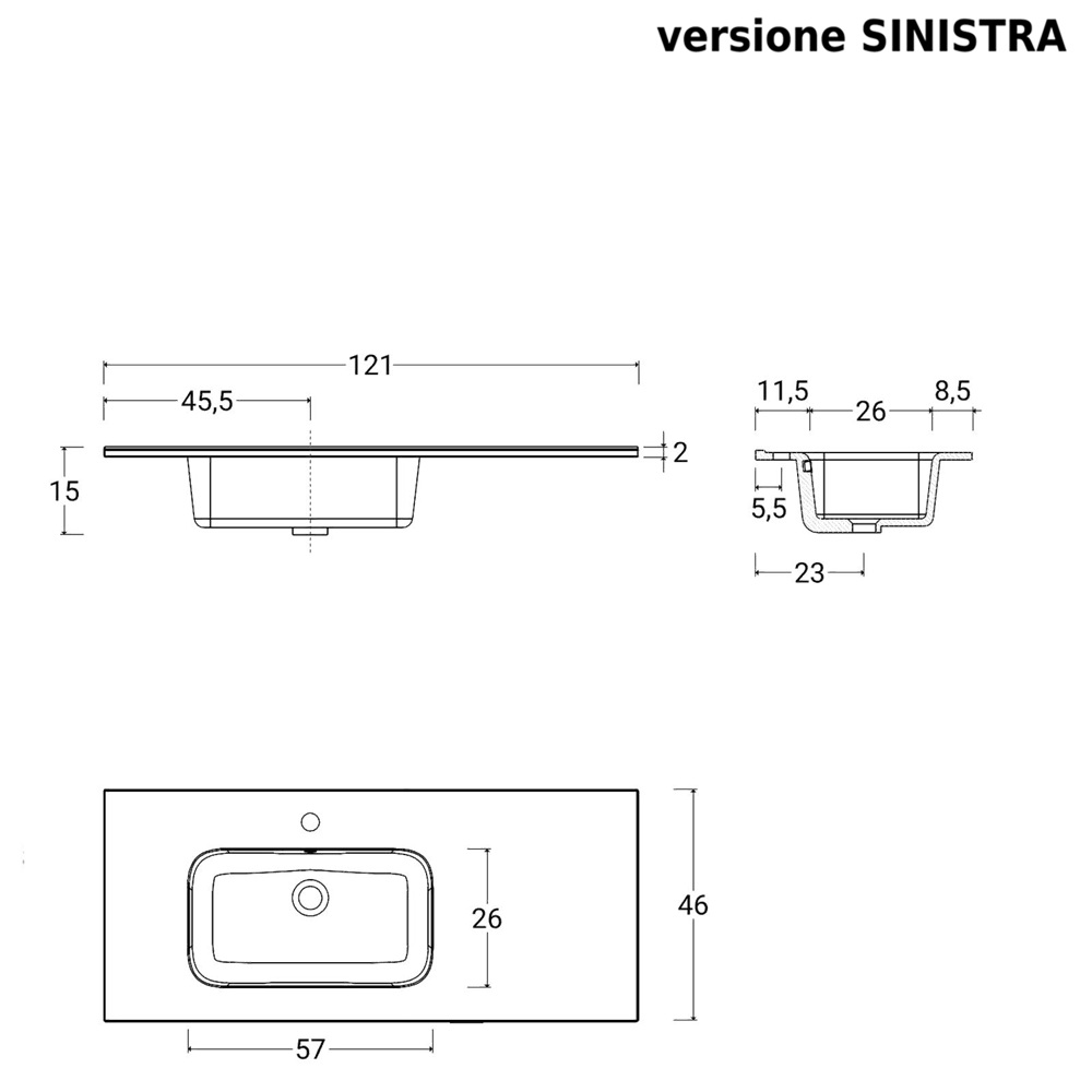 - SINISTRA con vasca lavabo decentrata a sinistra