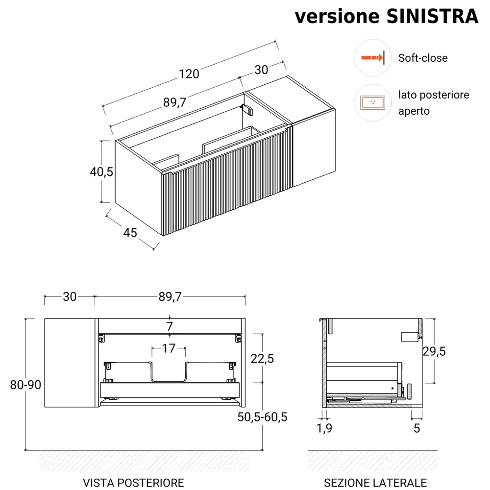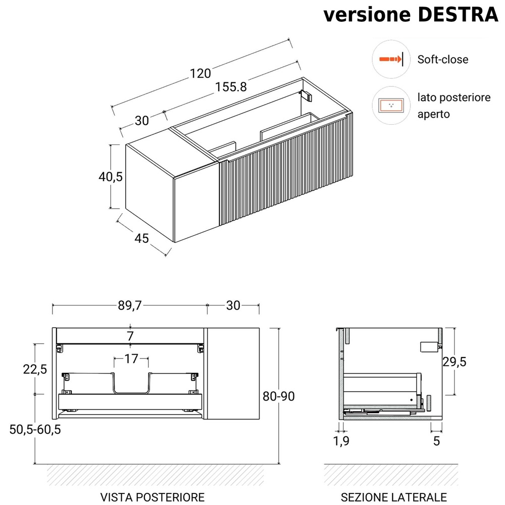 Mobile bagno Lion7 cm 120 sospeso lavabo dx o sx con cassettone ed anta