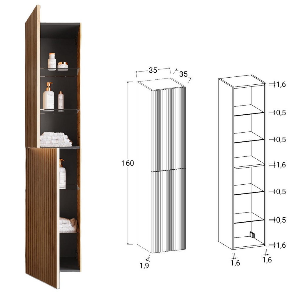 TRAMITE IL MENU’ A TENDINA è inoltre possibile aggiungere una colonna sospesa abbinata, da 35x35H160 cm, con 2 ante (push&pull) e ripiani interni
