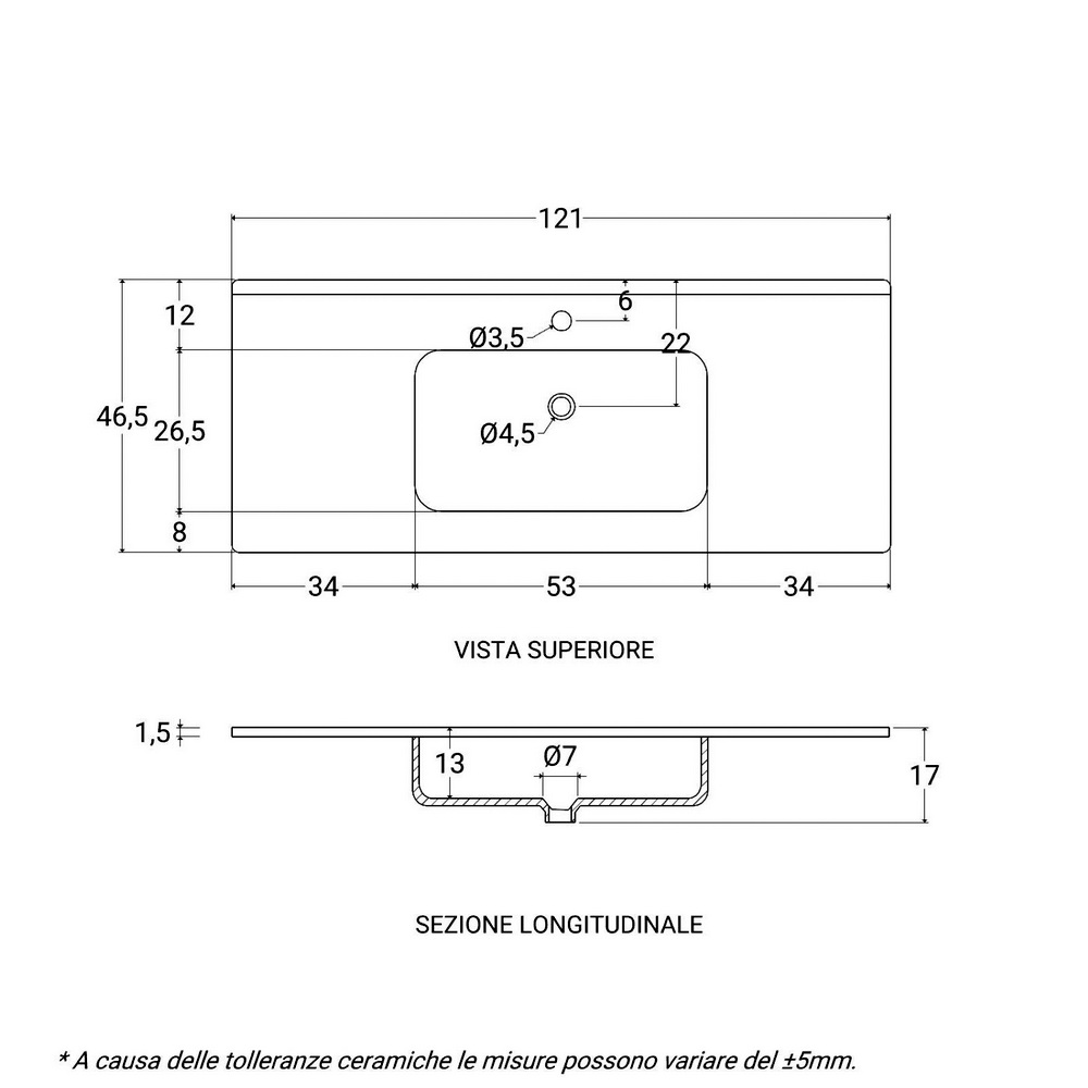ATTENZIONE: la rubinetteria, la piletta e l’applique non sono incluse nel prezzo.
