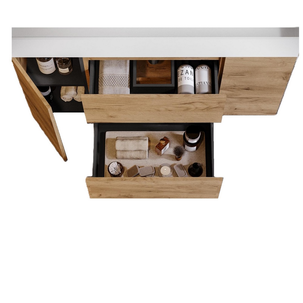 Mobile bagno sospeso Ariete3 da 120 cm con top lavabo, cassetti e ante o vani