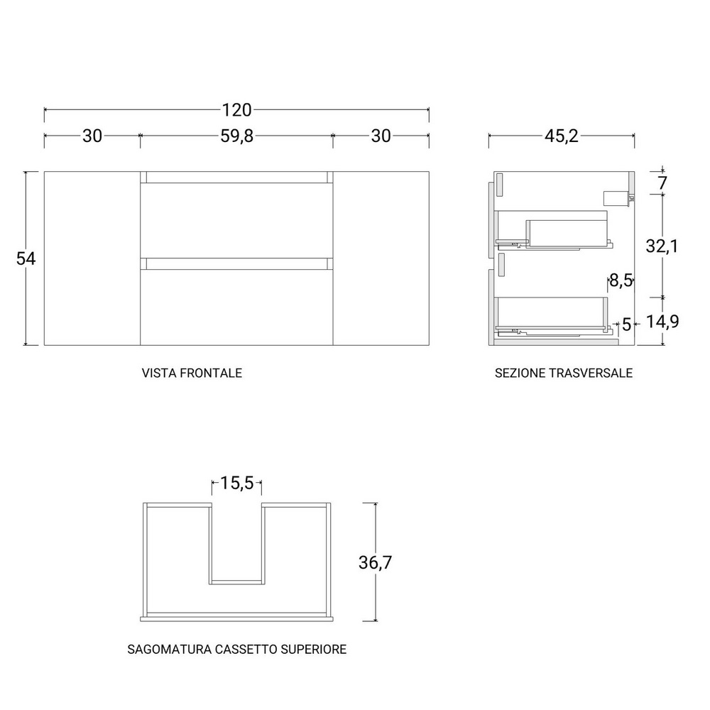 Mobile bagno a moderno da 120 cm, ad installazione sospesa