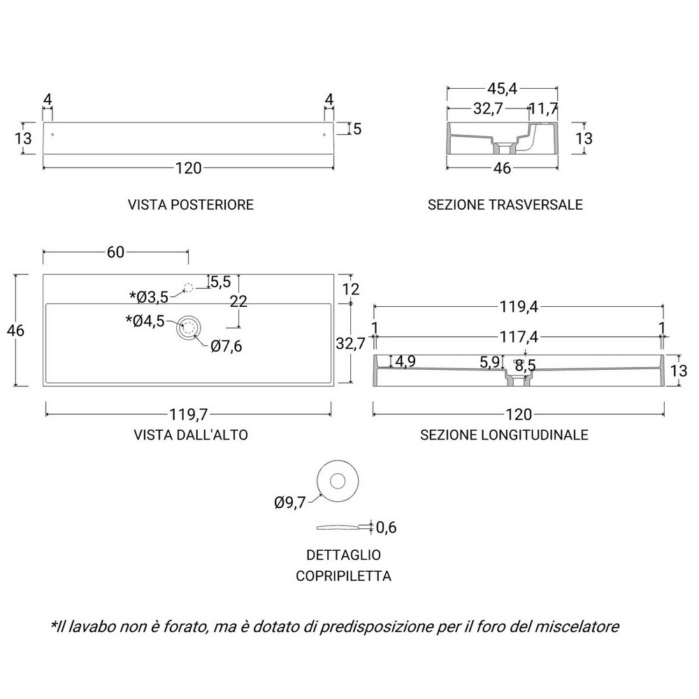 NB: rubinetteria, scarico e piletta NON inclusi nel prezzo