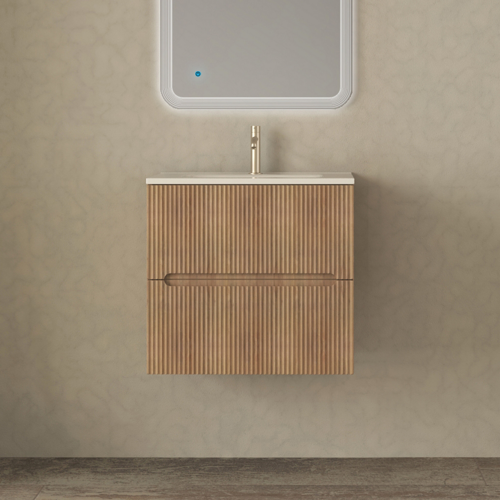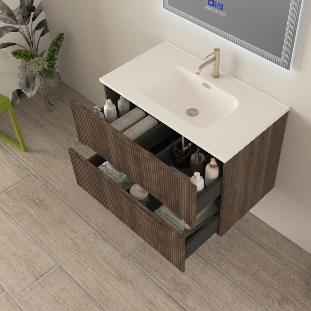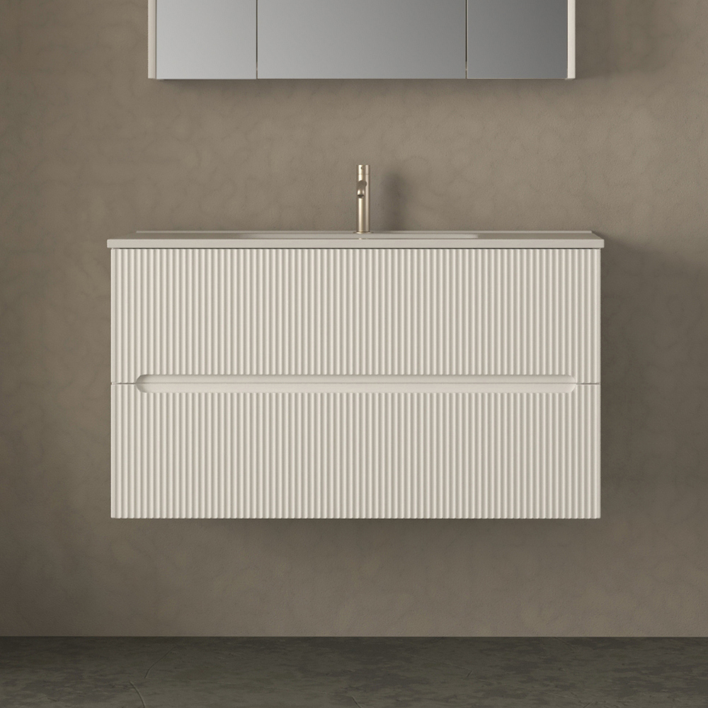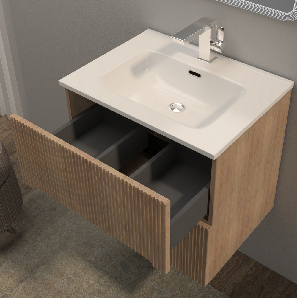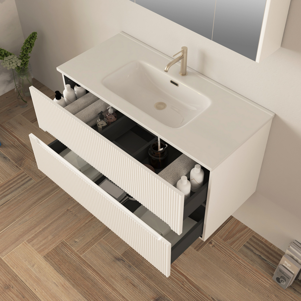 Mobile bagno sospeso Canova da 60, 80 o 100 cm in 4 colori e cassetti con effetto cannettato