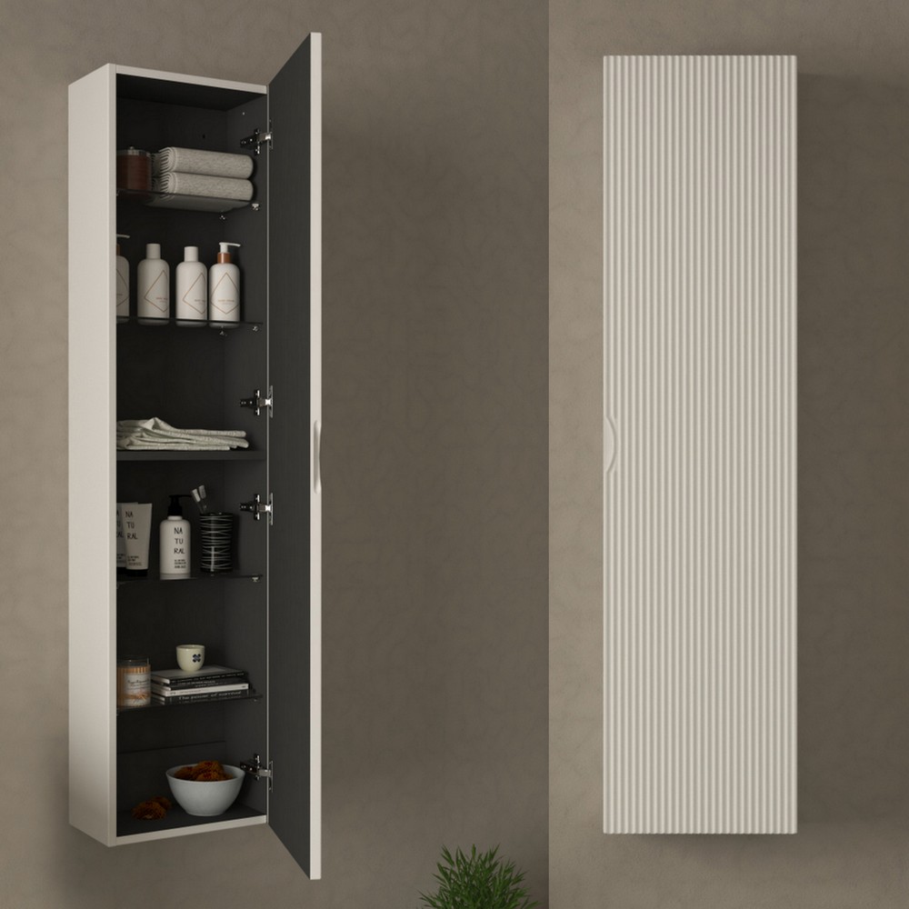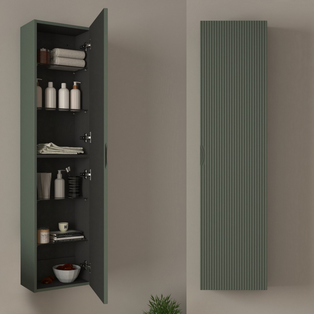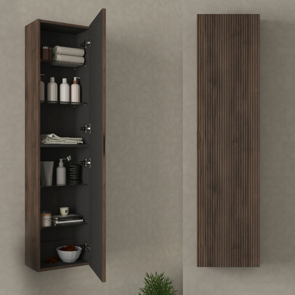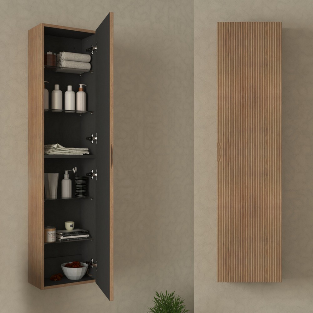 Tramite il menù a tendina è inoltre possibile abbinare 1 Colonna sospesa da 35xP20xH140 cm con un’anta e frontale ad effetto cannettato