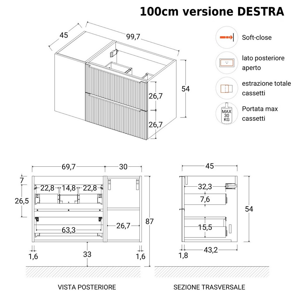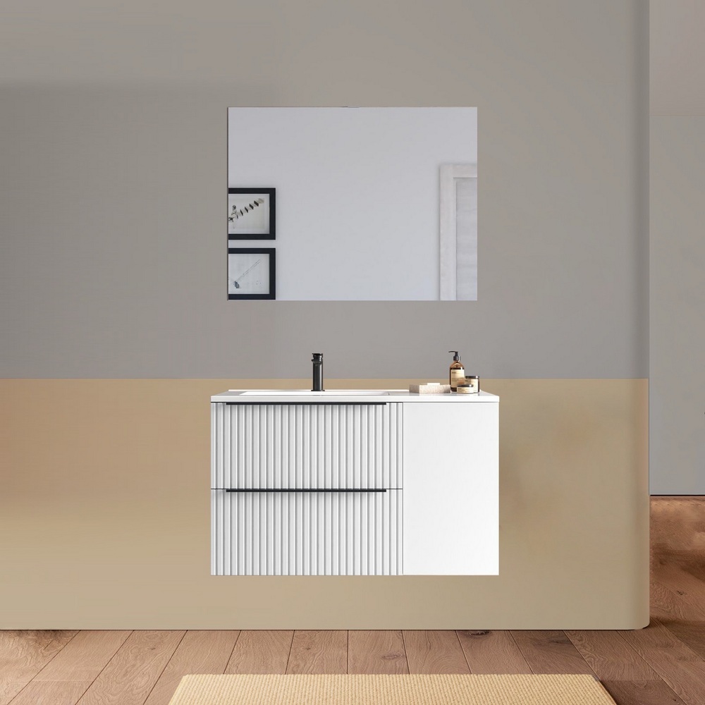Mobile bagno sospeso Lion3 da 90 o 100 cm con 2 cassetti e 1 anta lavabo dx o sx