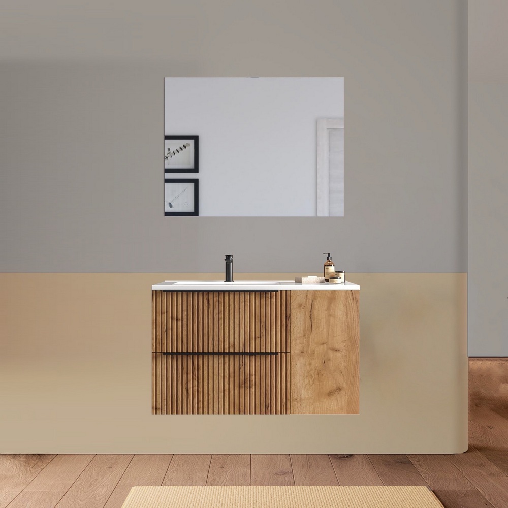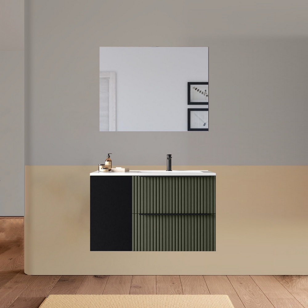 -42%Mobile bagno sospeso, disponibile in due misure e 10 combinazioni di colori. Base composta da due cassetti con frontali ad effetto cannettato e un anta satinata. Il lavabo (con vasca decentrata) e lo specchio sono inclusi nel prezzo.