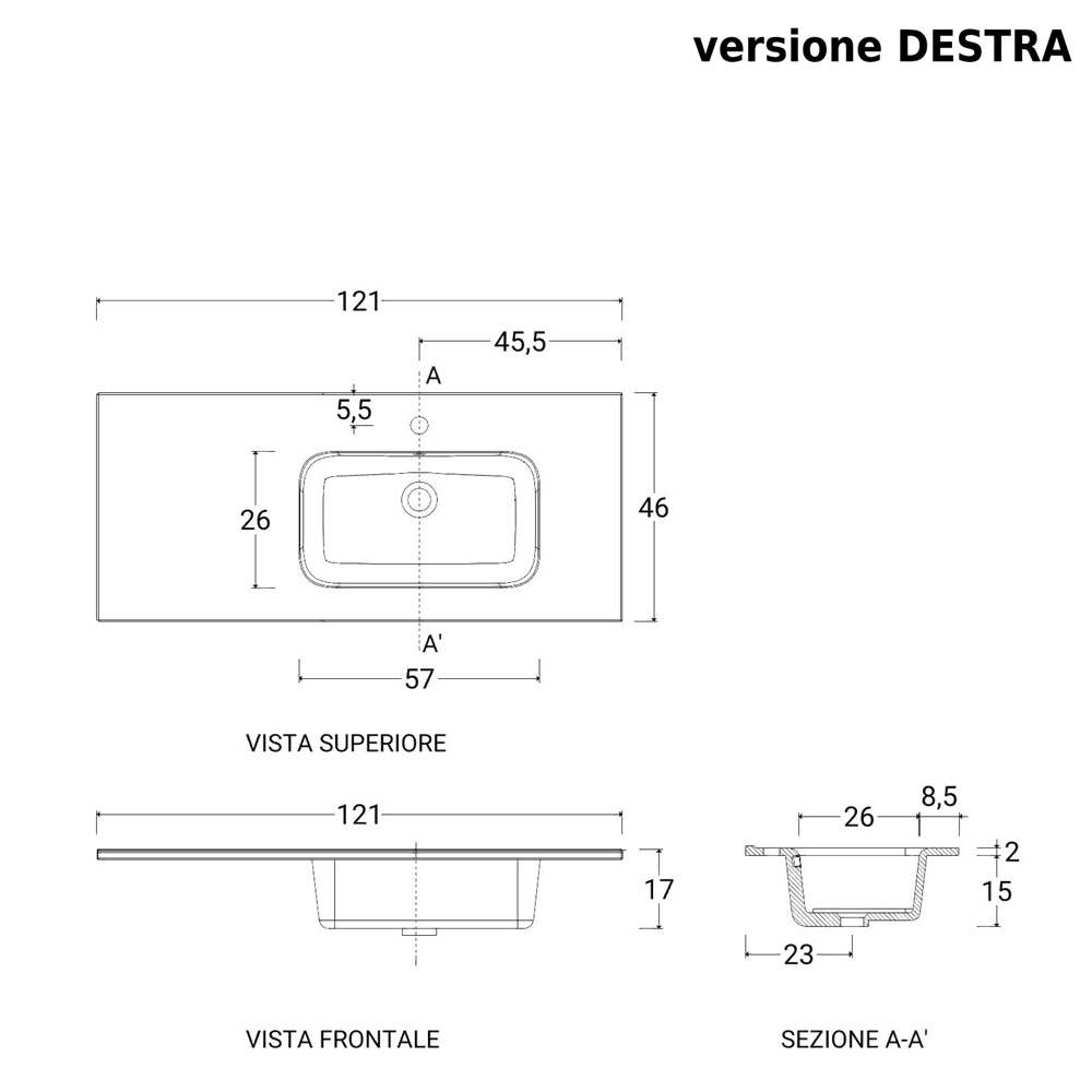 Lavabo in ceramica bianco lucido, con vasca decentrata A DESTRA oppure A SINISTRA