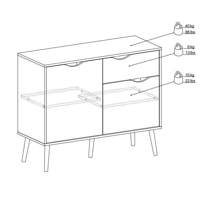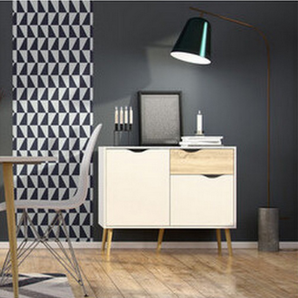 Mobile credenza da 99 o 147 cm bianco e rovere con piedini ante e cassetti BM094