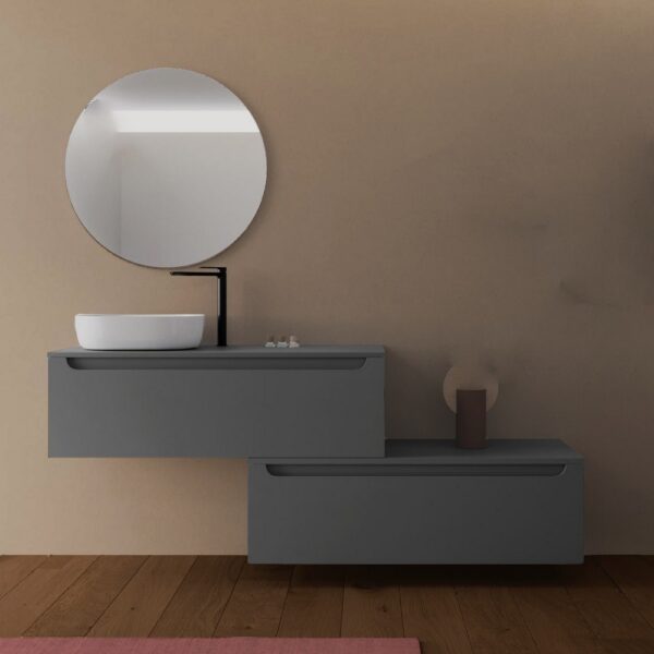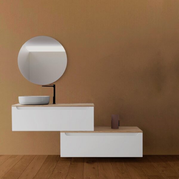 -15%Base composta da un cassettone, con predisposizione per lavabo da appoggio sulla destra o sulla sinistra. Il lavabo non è incluso nel prezzo. E’ possibile abbinarvi una cassettiera e/o un pensile.