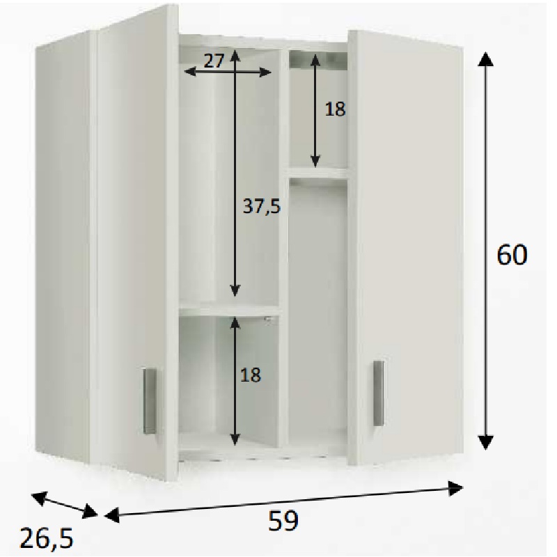 Pensile a due ante da 59×27 cm bianco con ripiani BM139