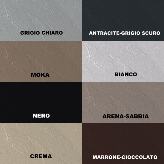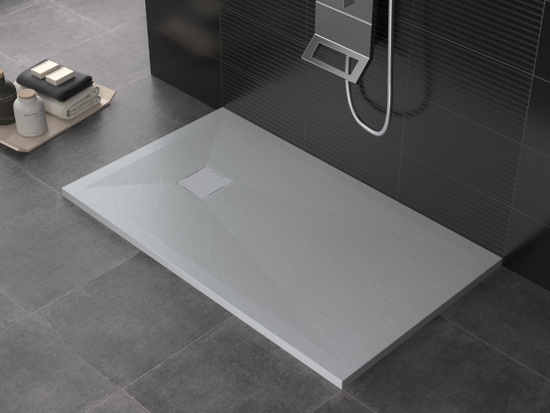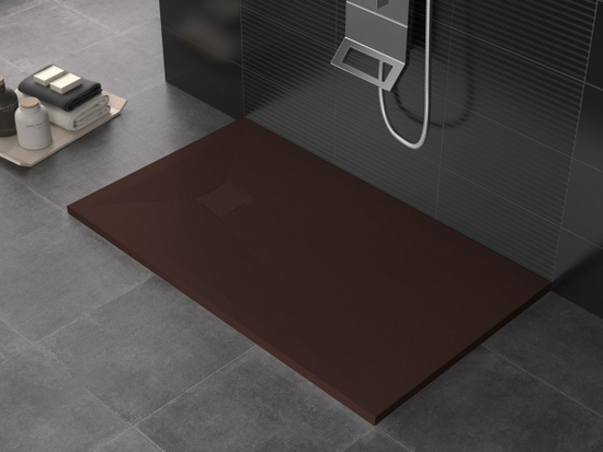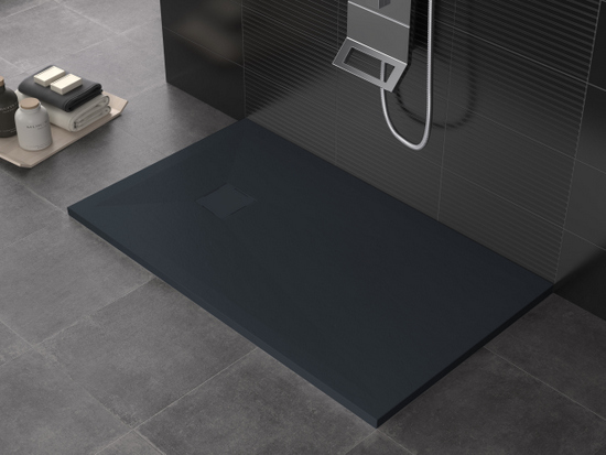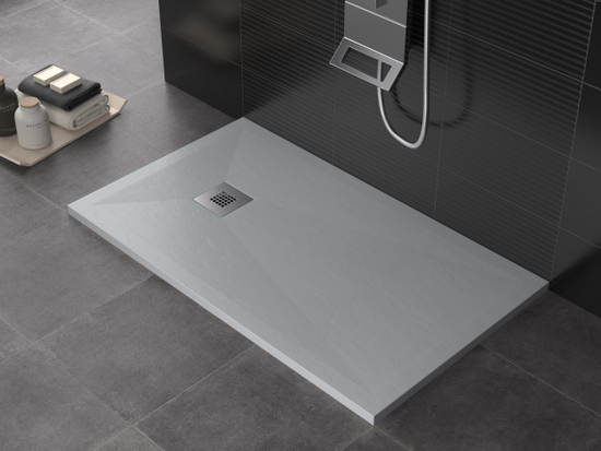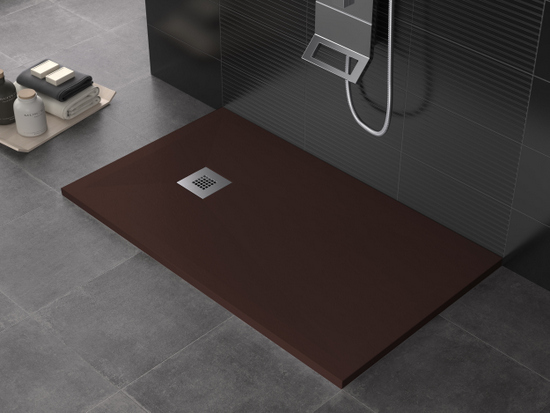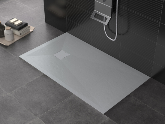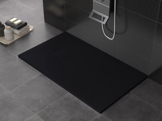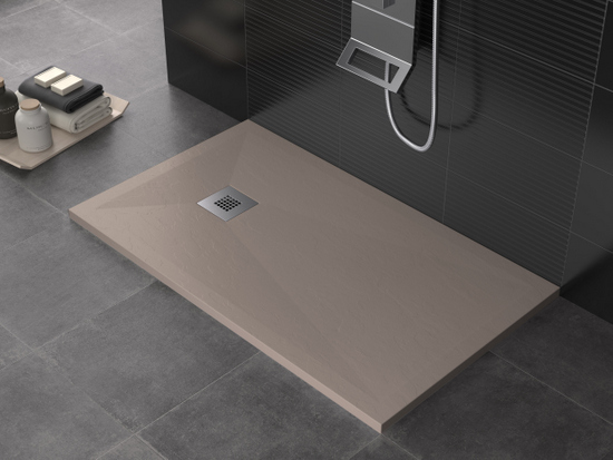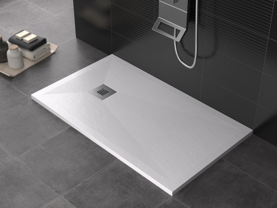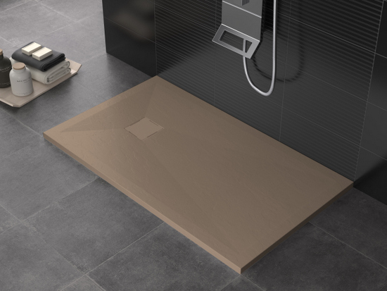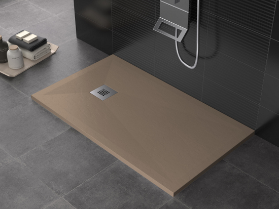Piatto doccia in marmo-resina disponibile nei colori: bianco, crema, grigio chiaro, antracite, nero, cioccolato, moka e sabbia.
