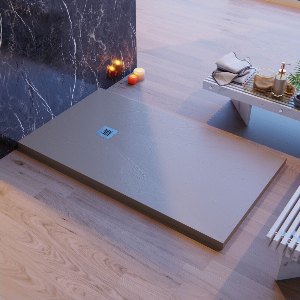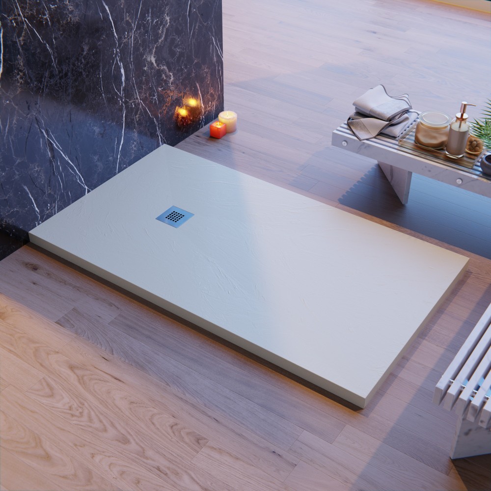 Piatto doccia in marmoresina italiano, ridimensionabile e disponibile in tantissime misure, su ordinazione anche su misura. Colori: bianco, crema, tortora, marrone, grigio chiaro, antracite, nero. Piletta con griglia in acciaio.